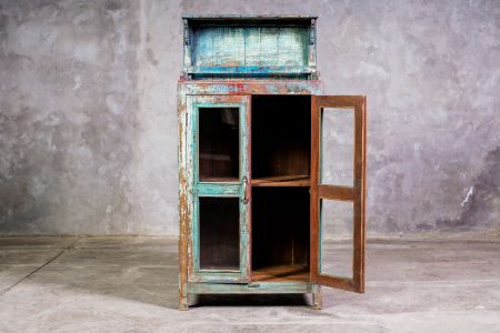Vitrina India Pintura Decapada 3 Compartimentos Interior