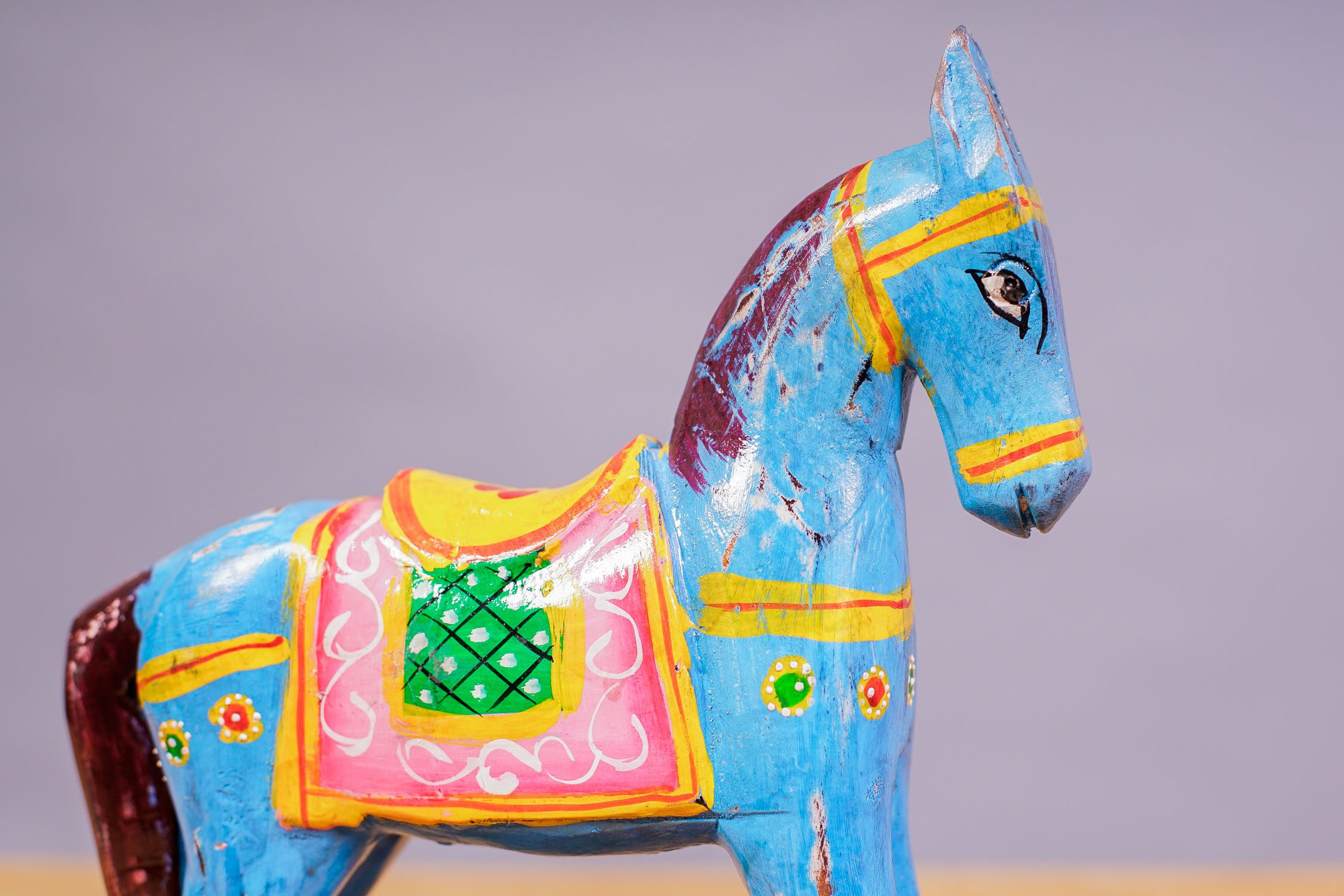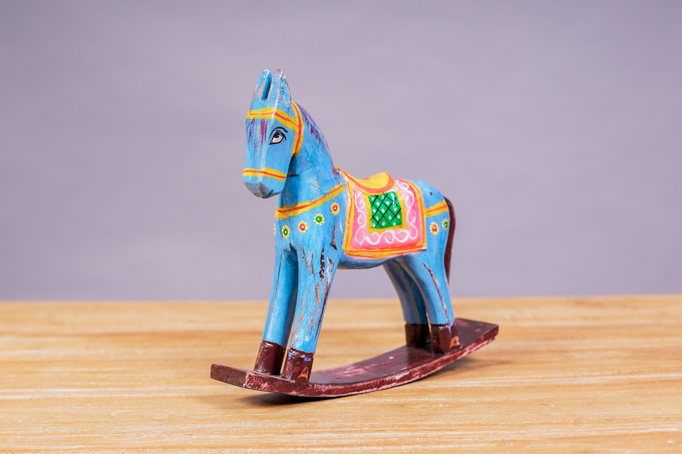 Caballo balancín de madera, pintado a mano.