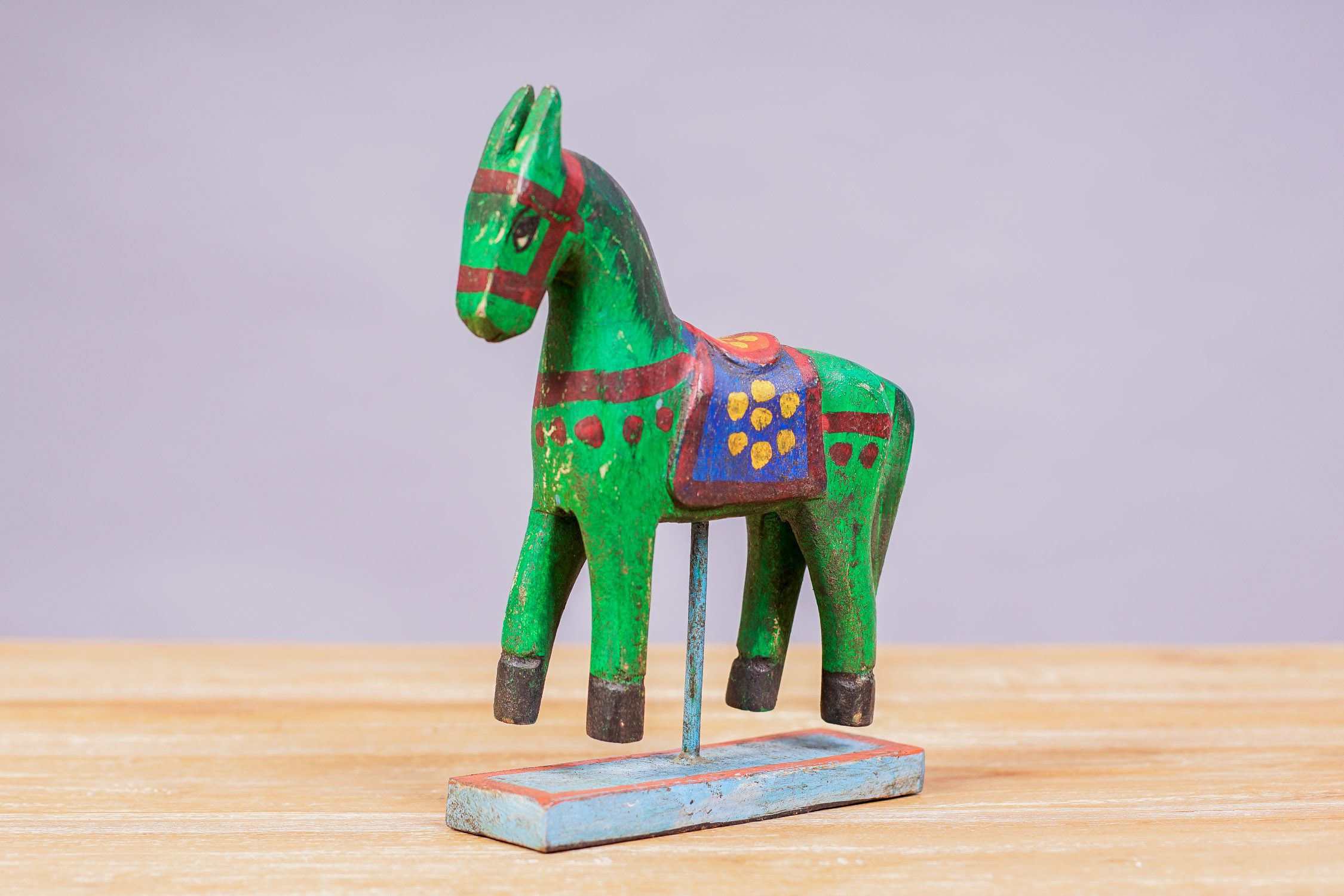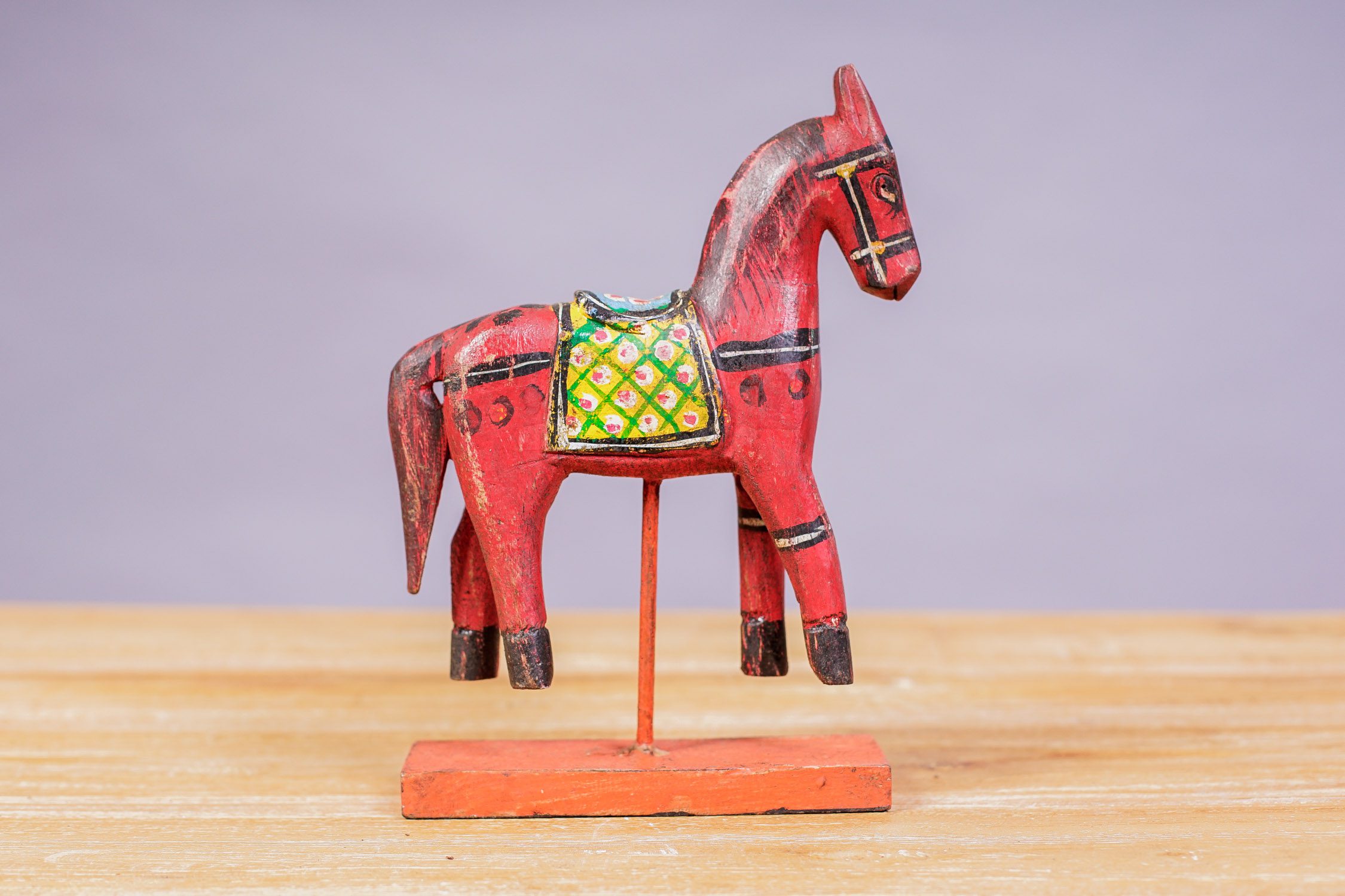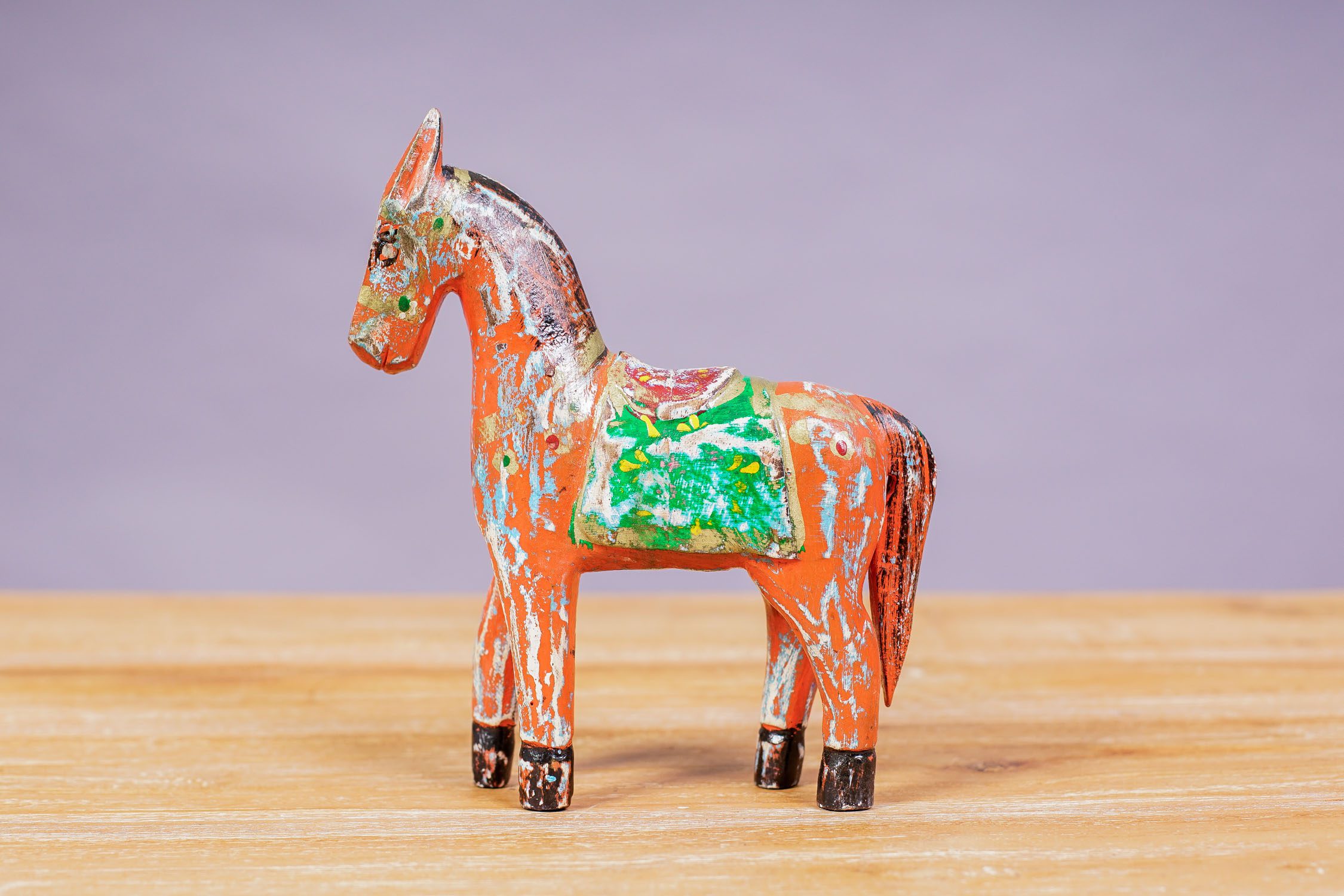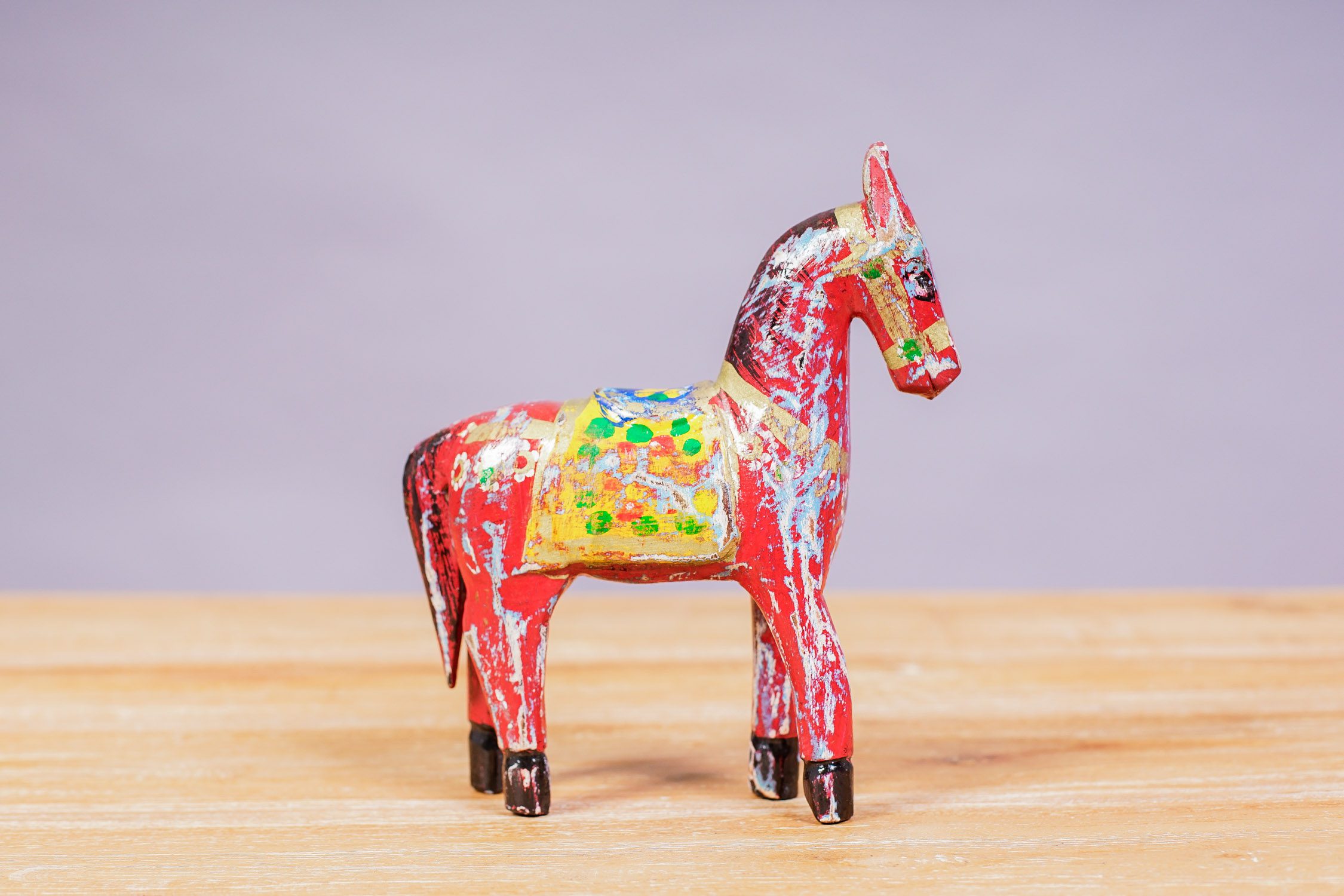 Escultura de caballo fabricado en madera,pintado a mano, de origen Indio.