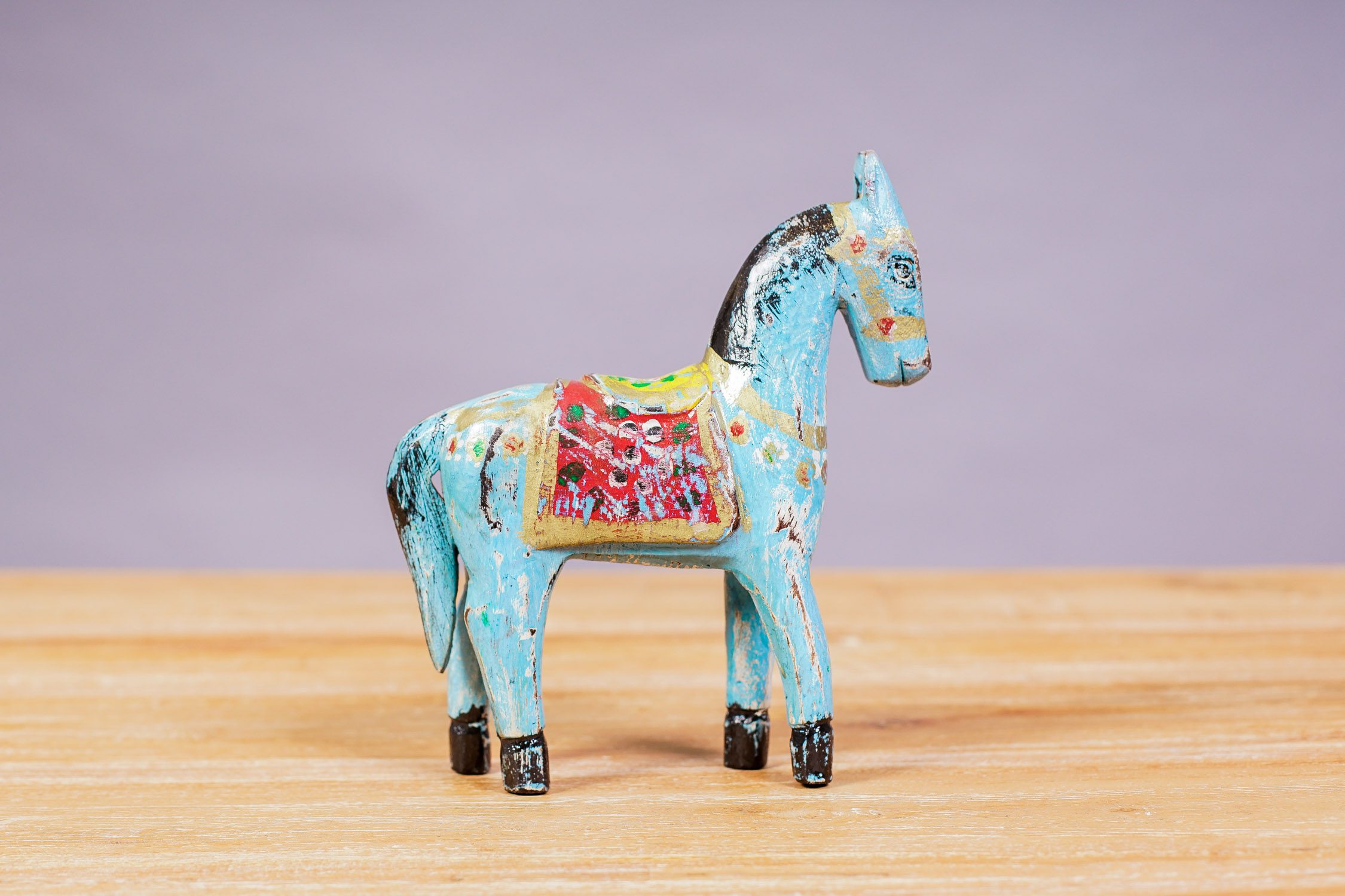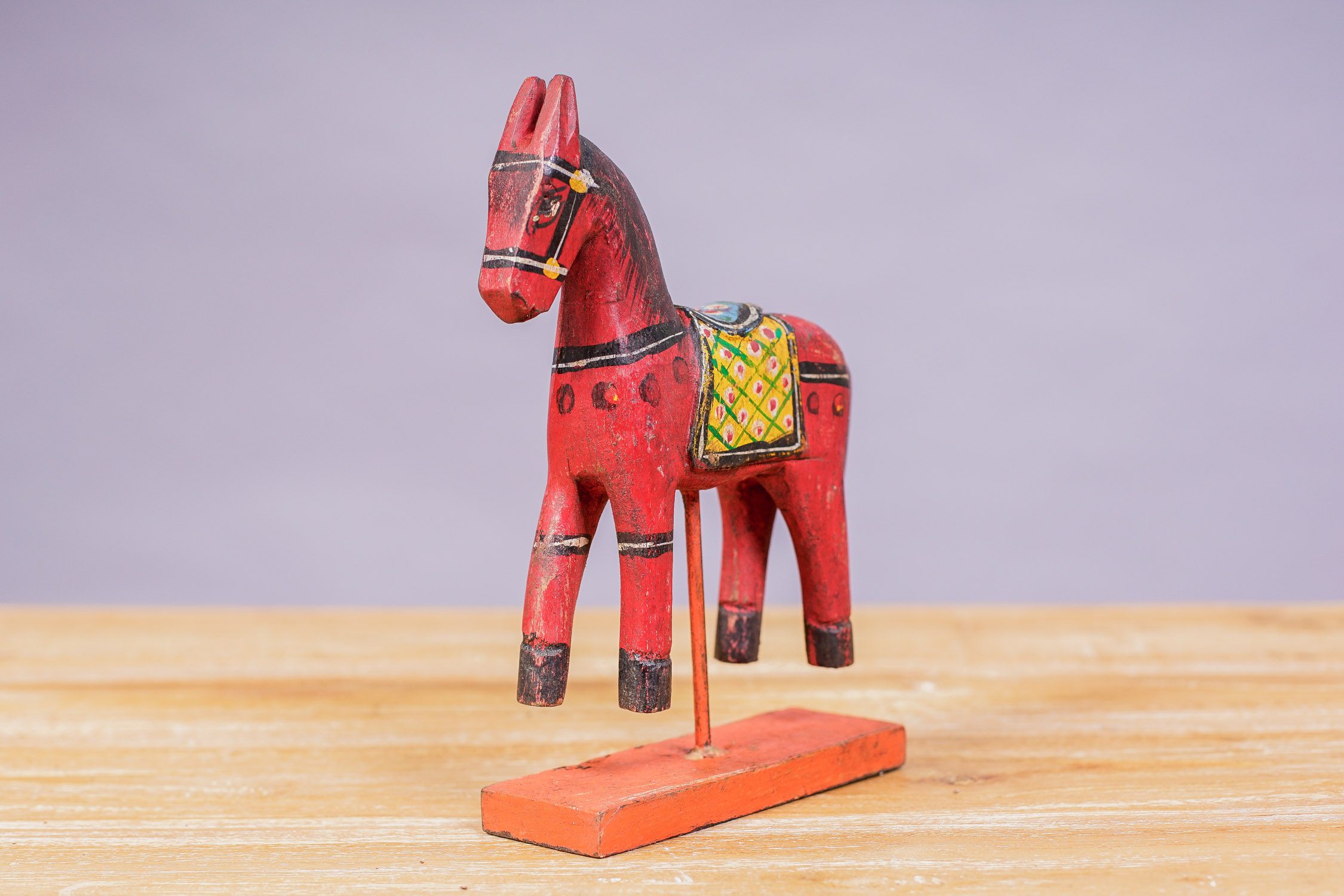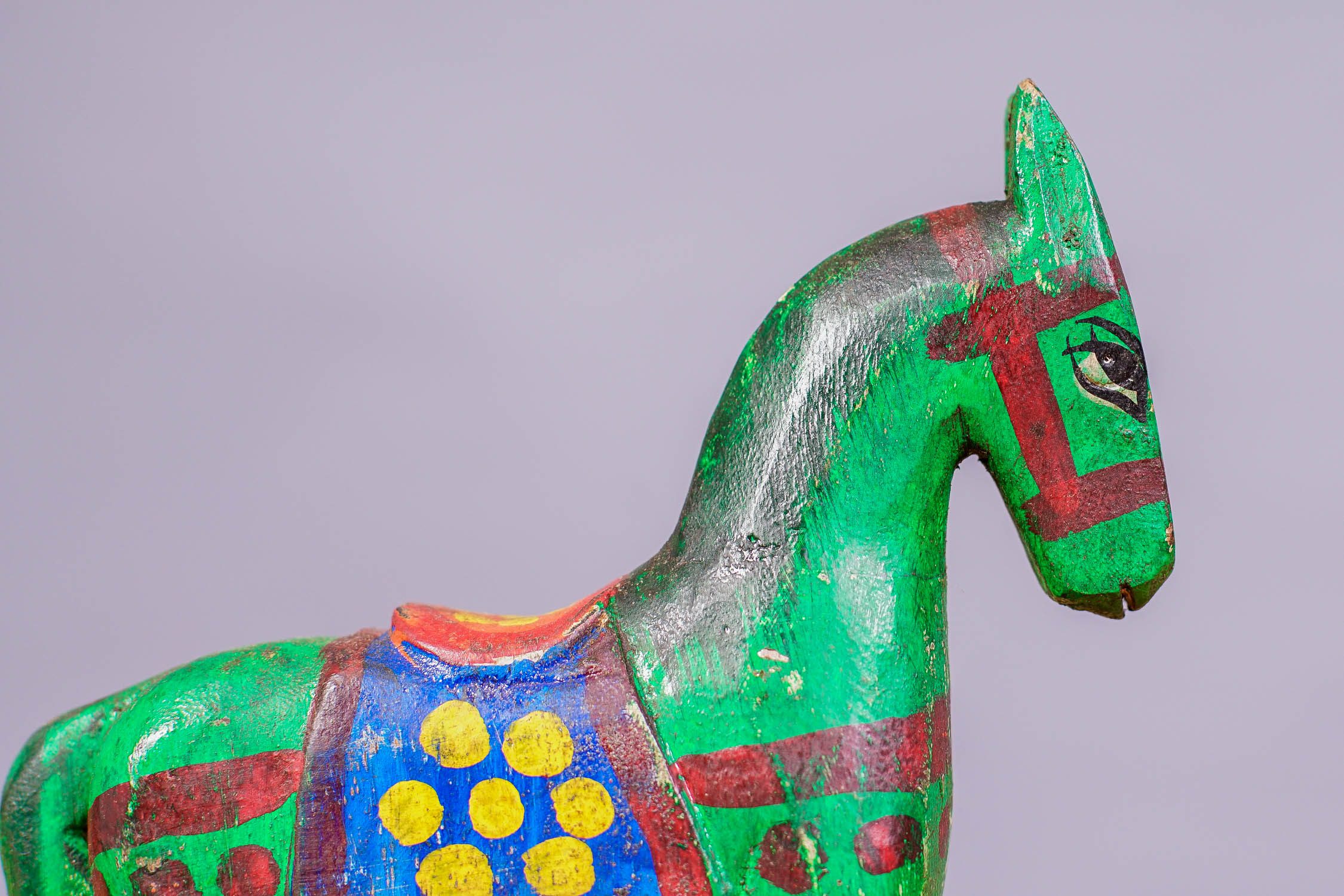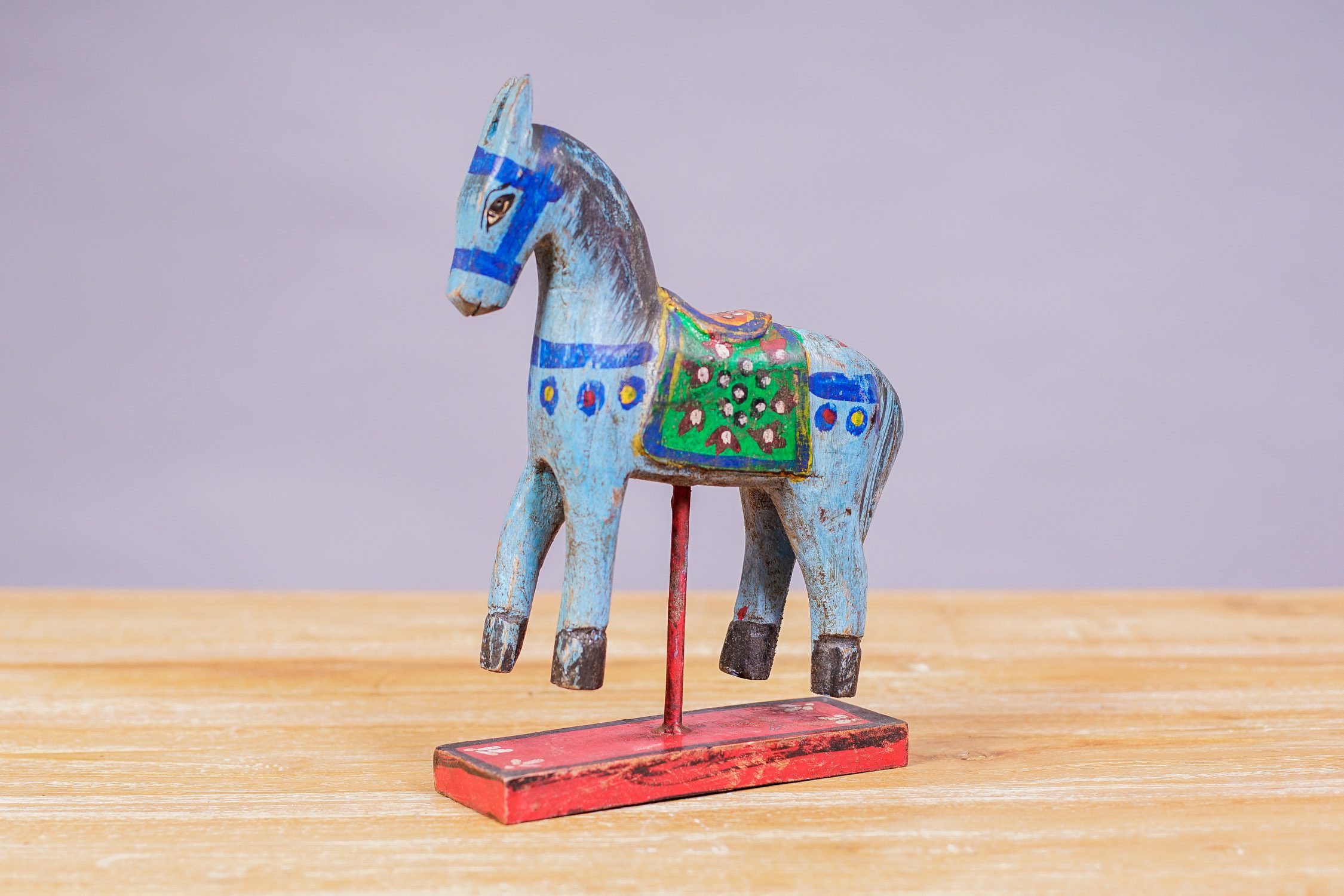 Escultura de caballo fabricado en madera,pintado a mano, de origen Indio.