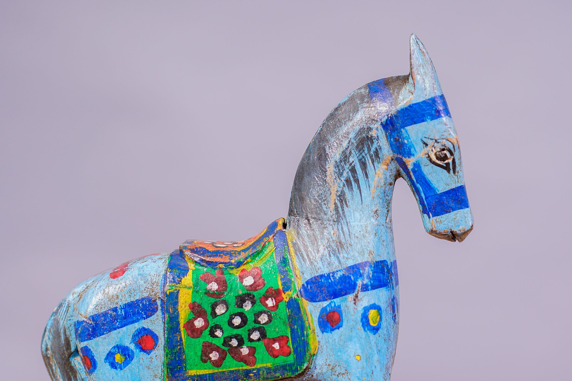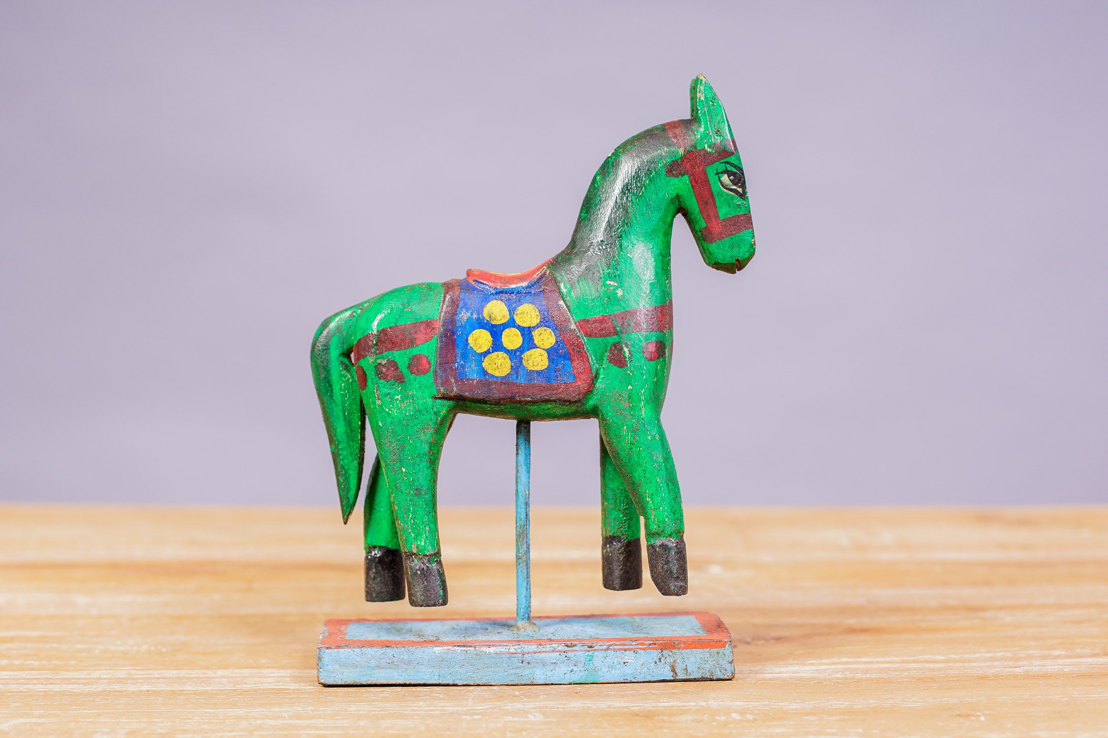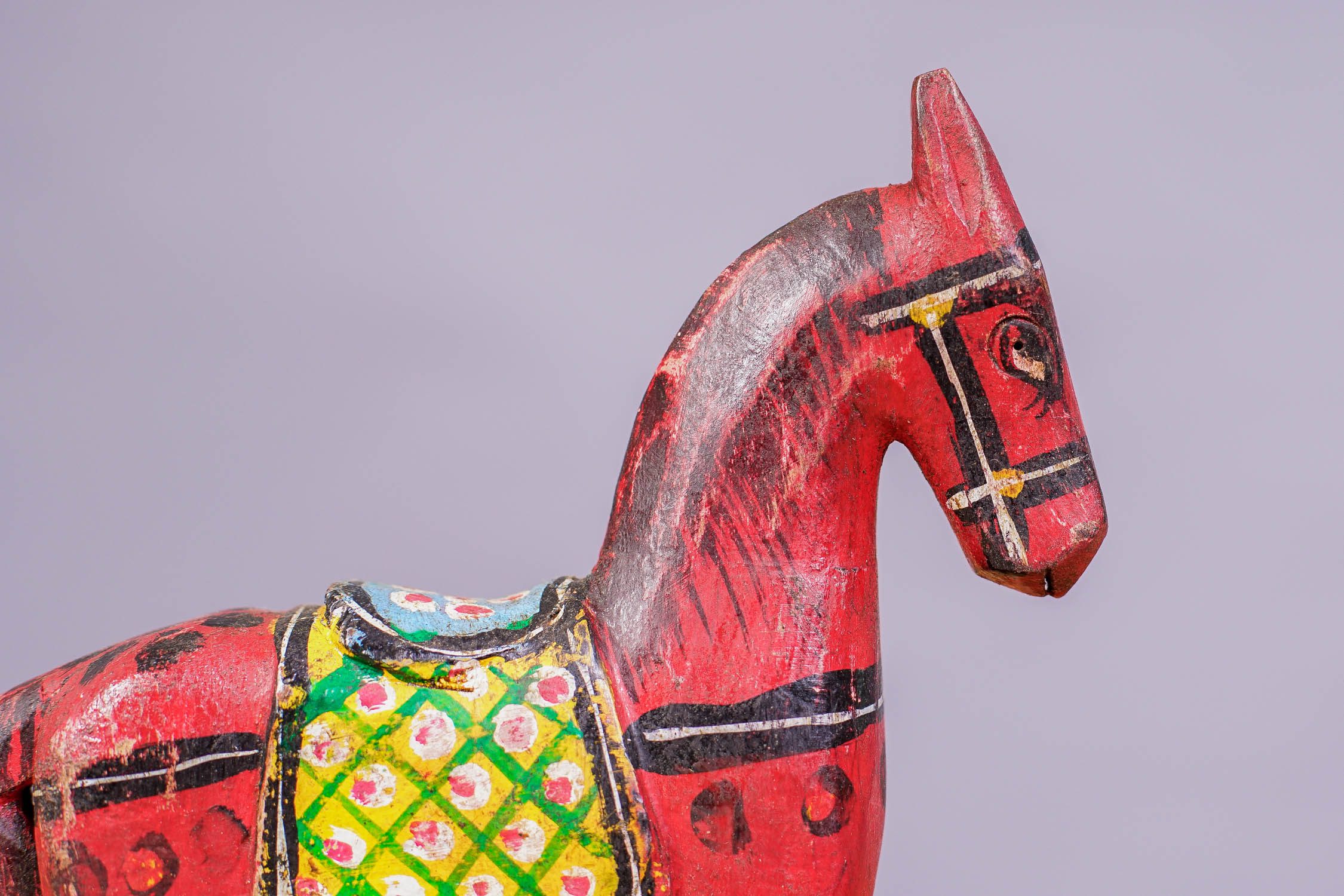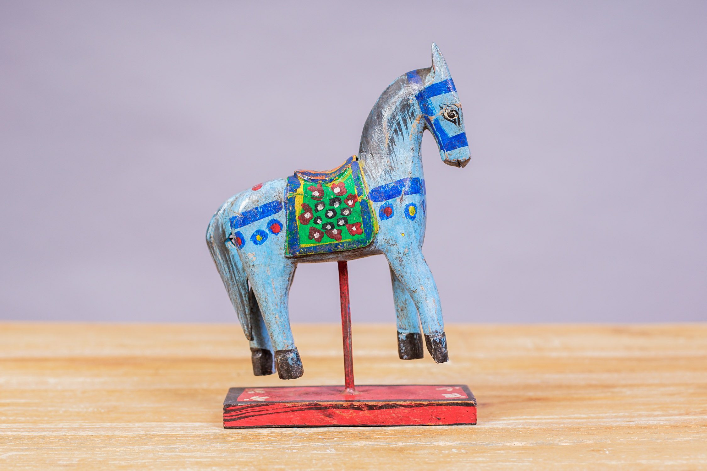 Escultura de caballo fabricado en madera,pintado a mano, de origen Indio.