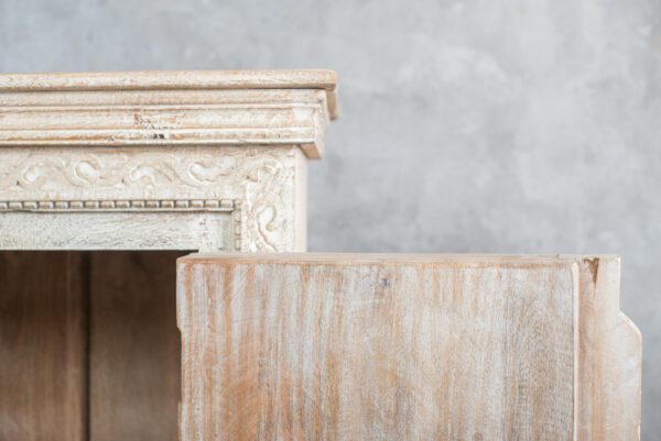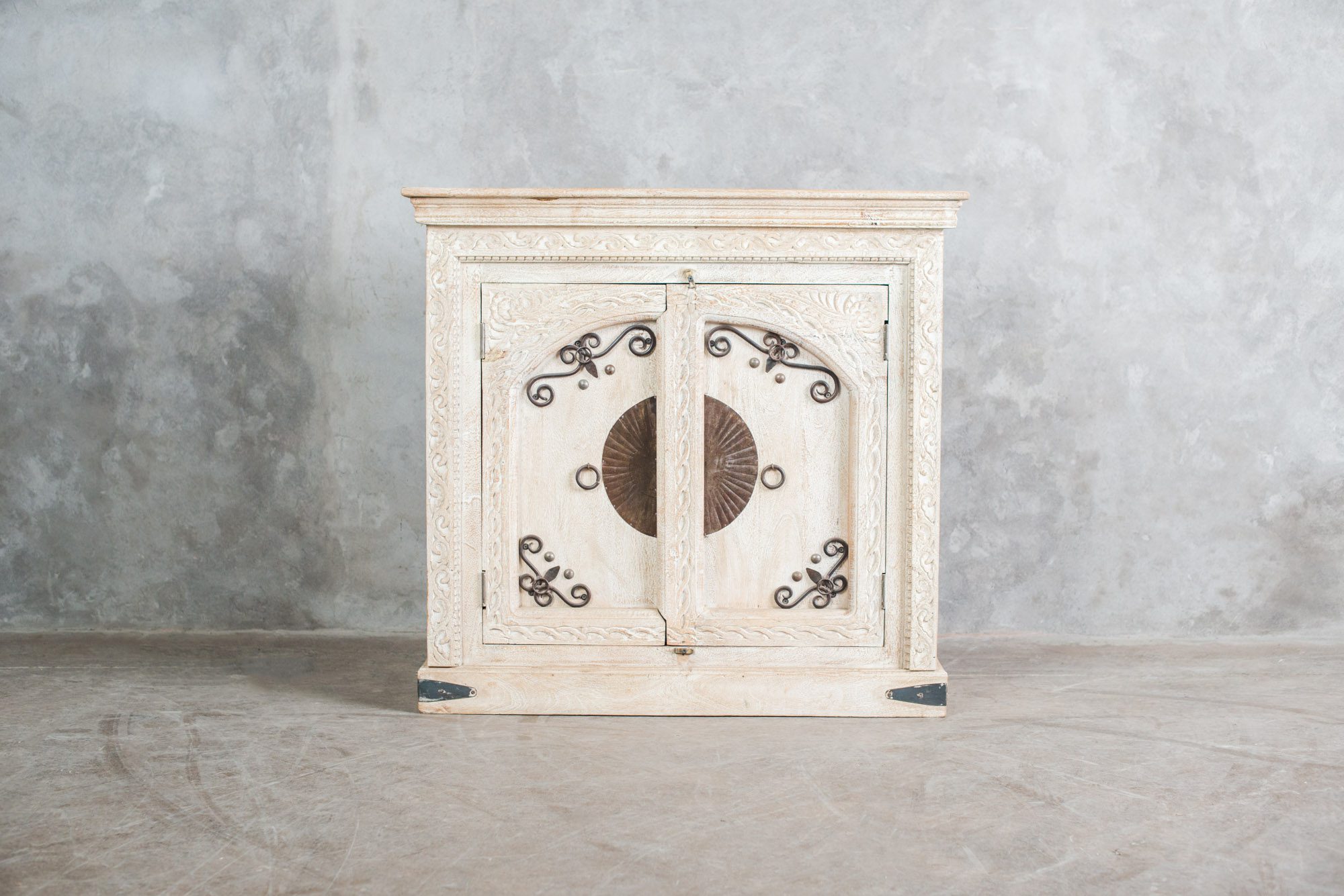 Cabinet hecho con maderas recicladas y aplicaciones de metal. Fabricado en India.