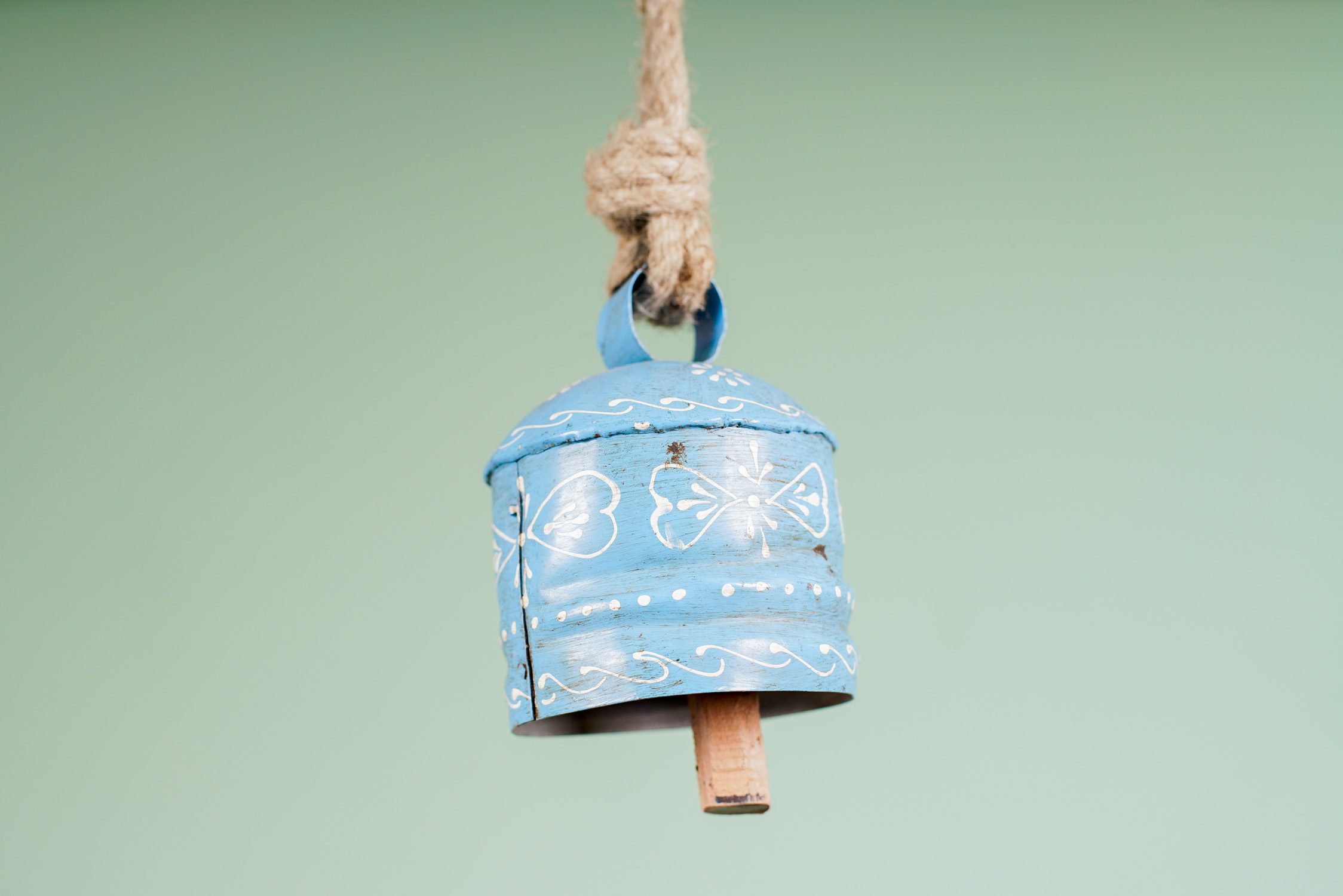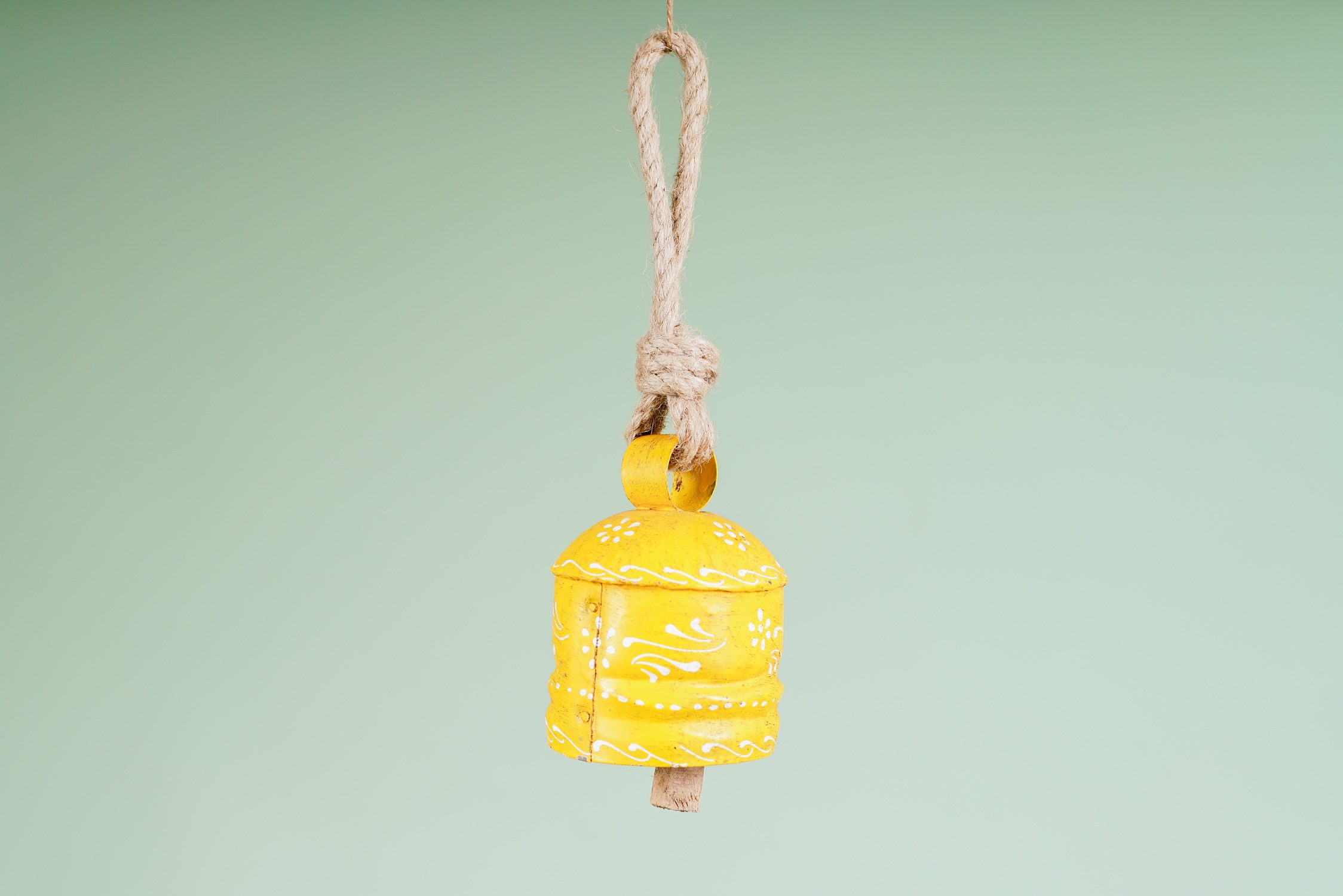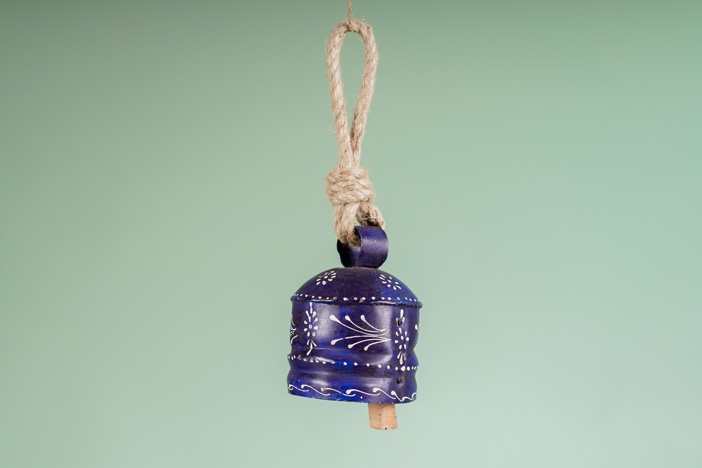 Cencerro fabricado en metal de origen Indio, un hermoso objeto para decorar tus espacios.