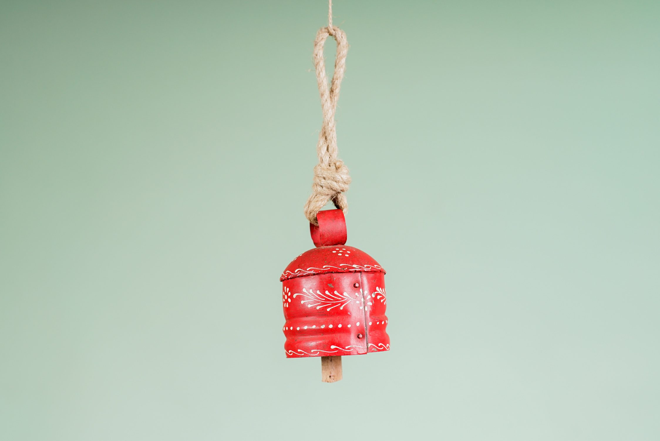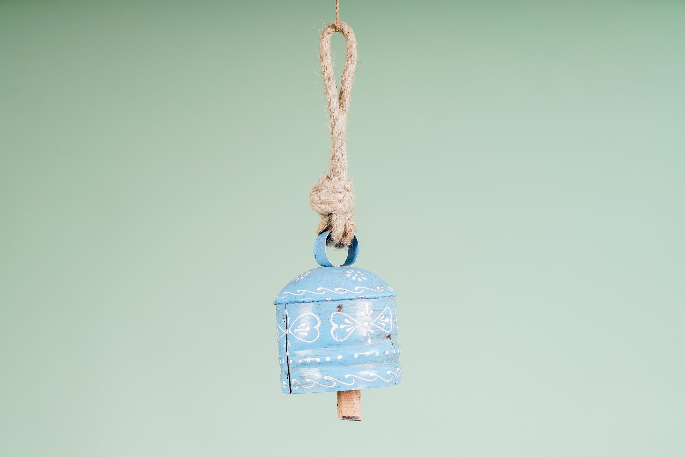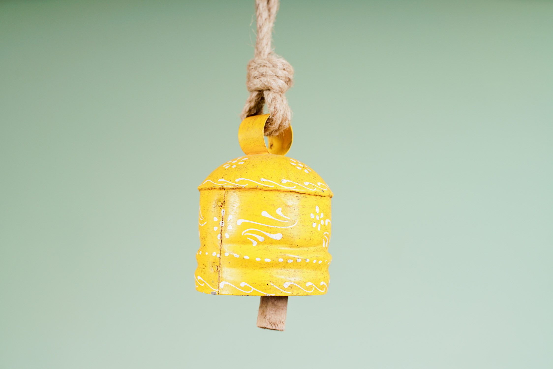 Cencerro fabricado en metal de origen Indio, un hermoso objeto para decorar tus espacios.