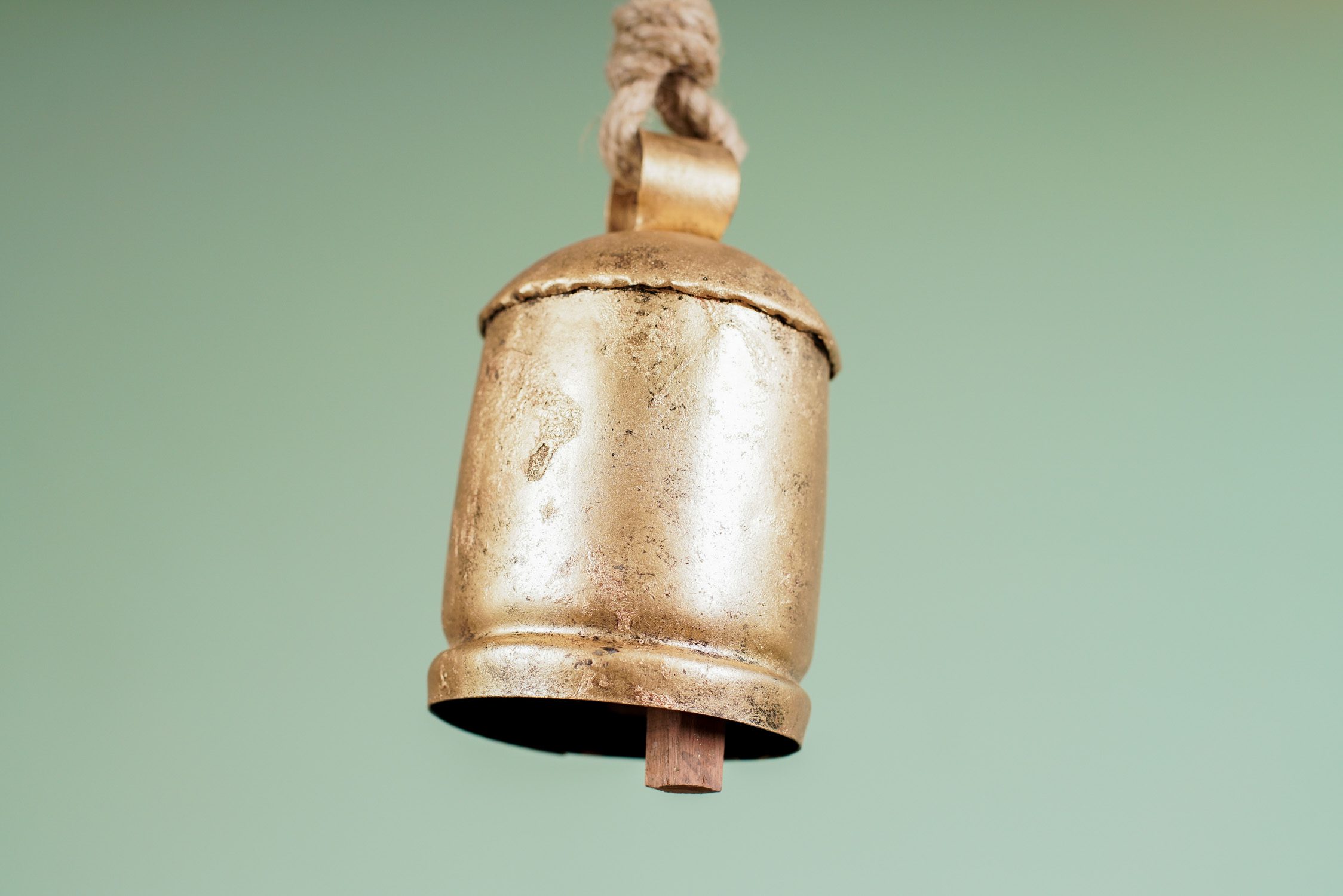 Cencerro fabricado en metal de origen Indio, un hermoso objeto para decorar tus espacios.