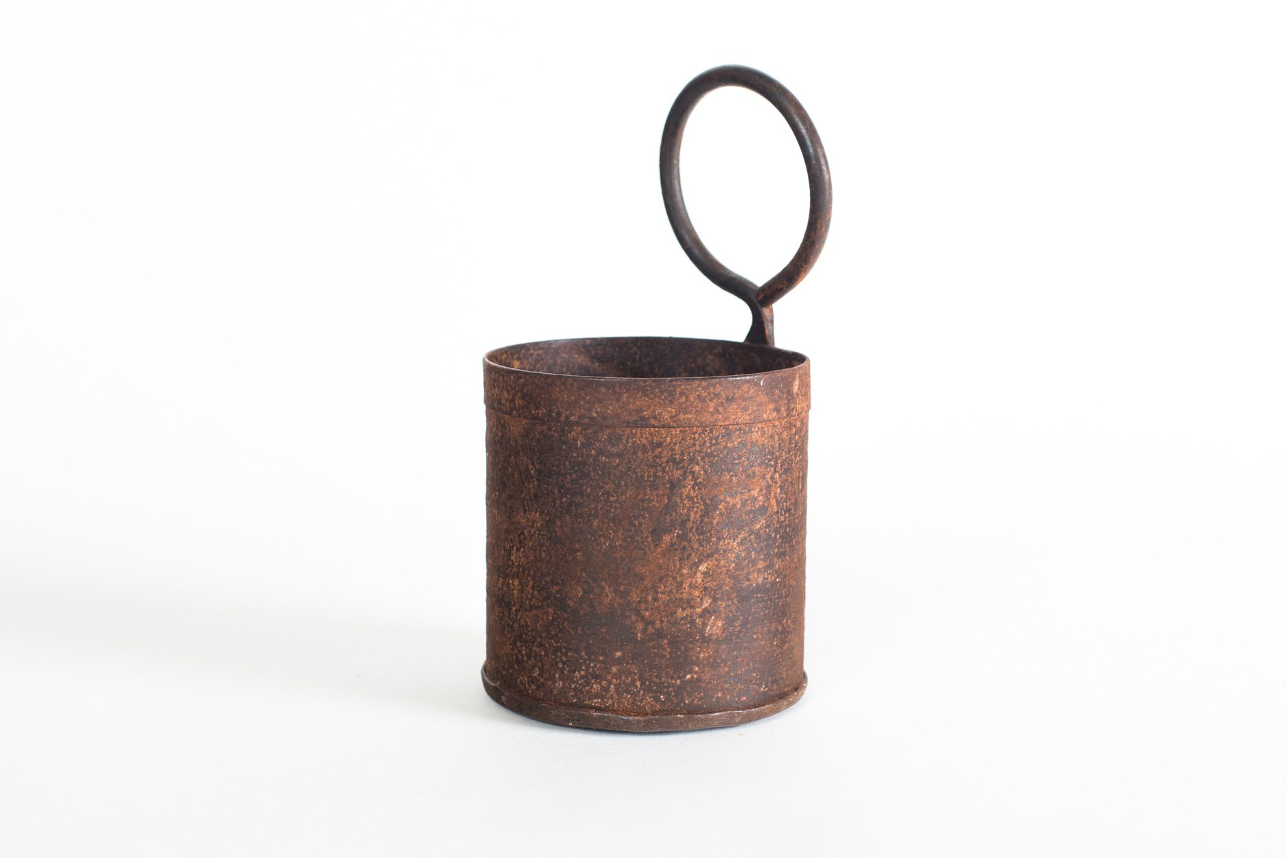 Contenedor antiguo de metal. Útil y versátil. Para ser usado de lapicero, porta botellas, maceteros, etc. Fabricado en India.