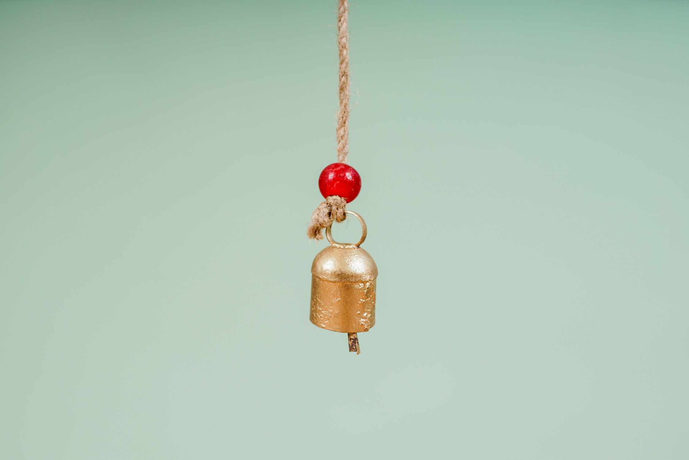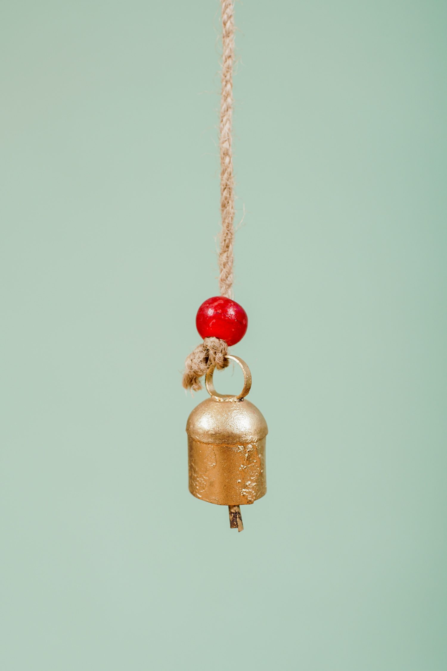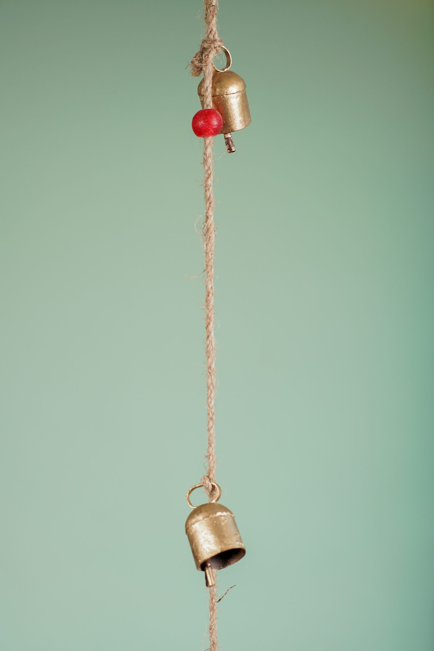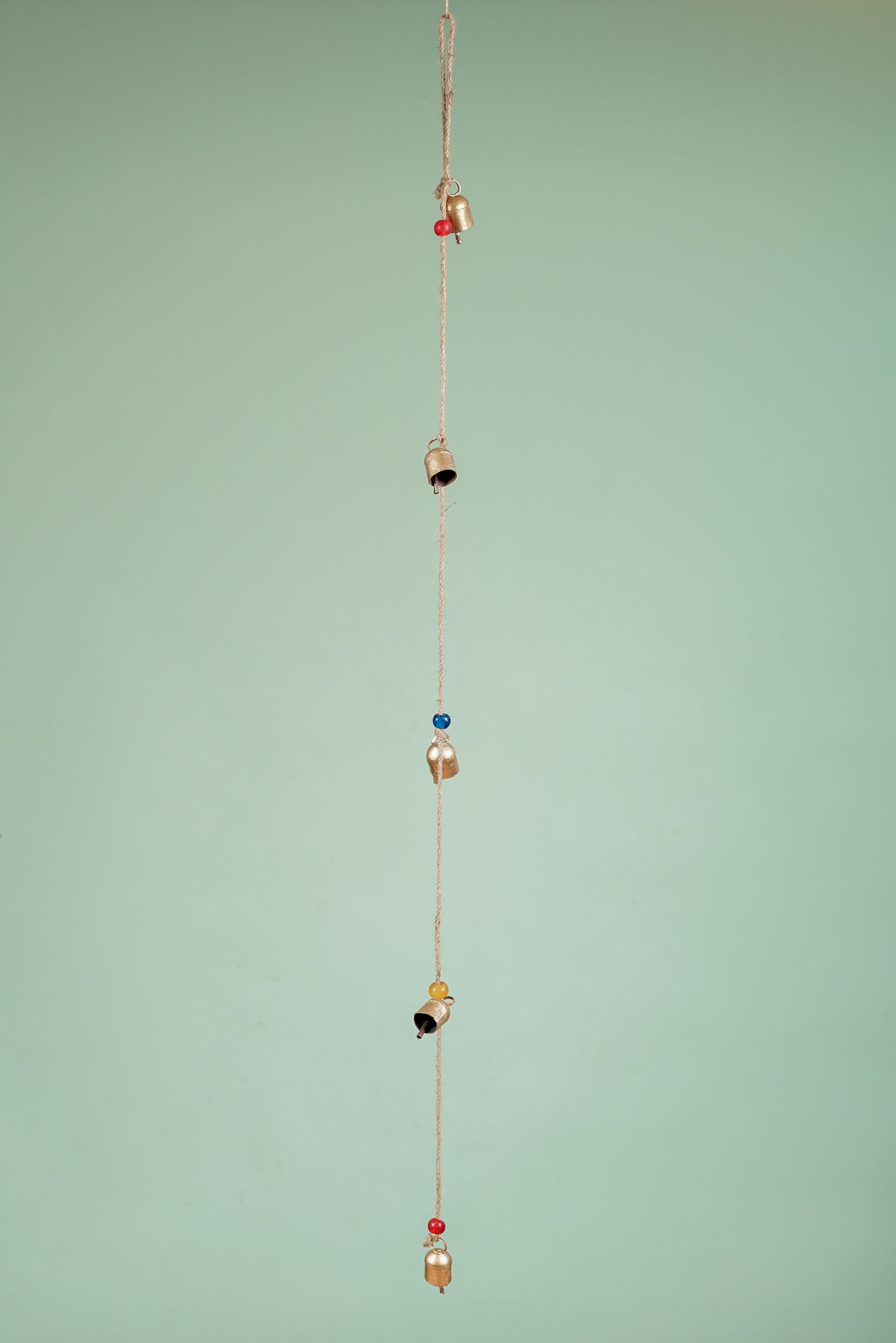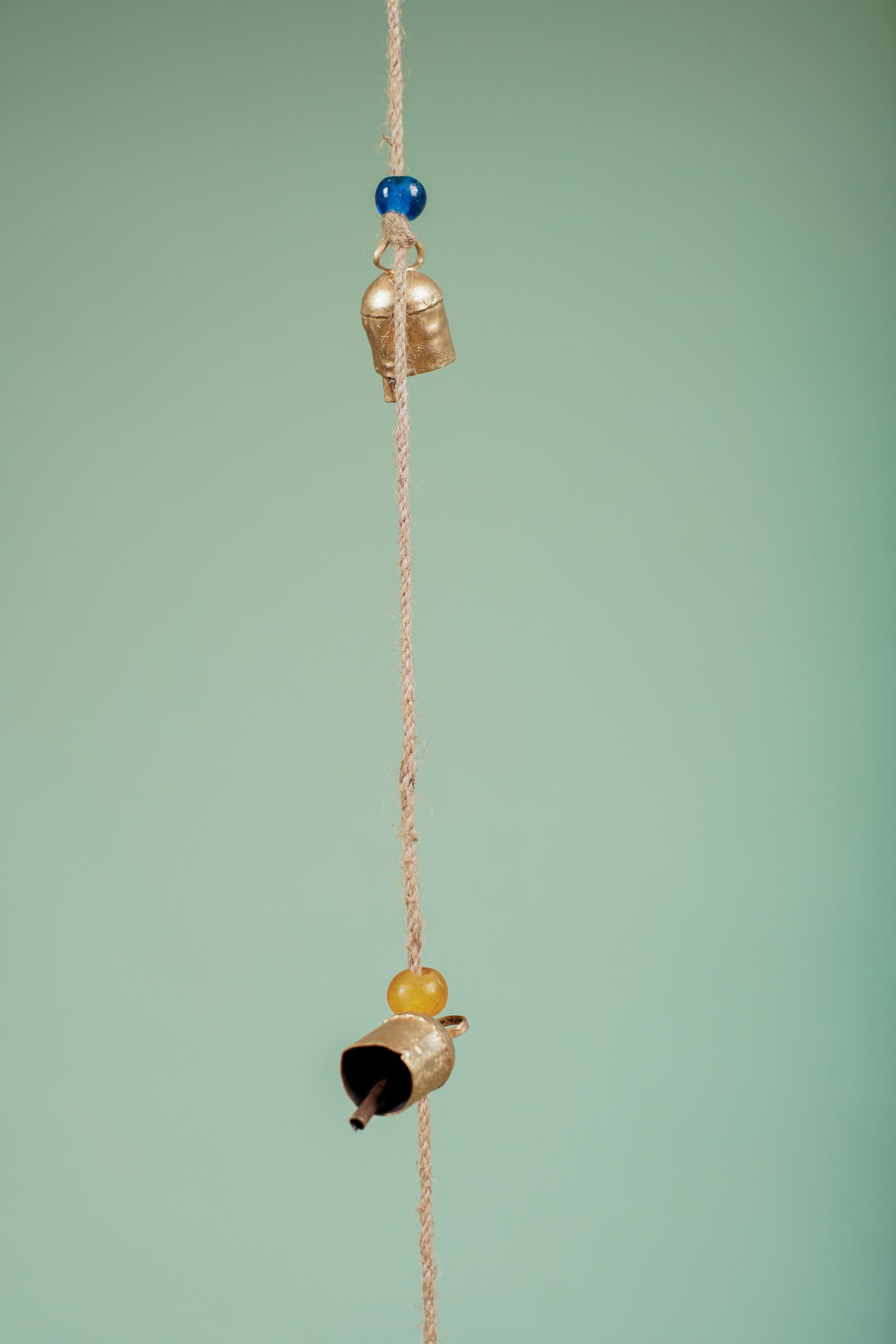 Cuelga campanitas de metal pintadas a mano. Para decorar tus espacios interiores o exteriores. Fabricada en India.