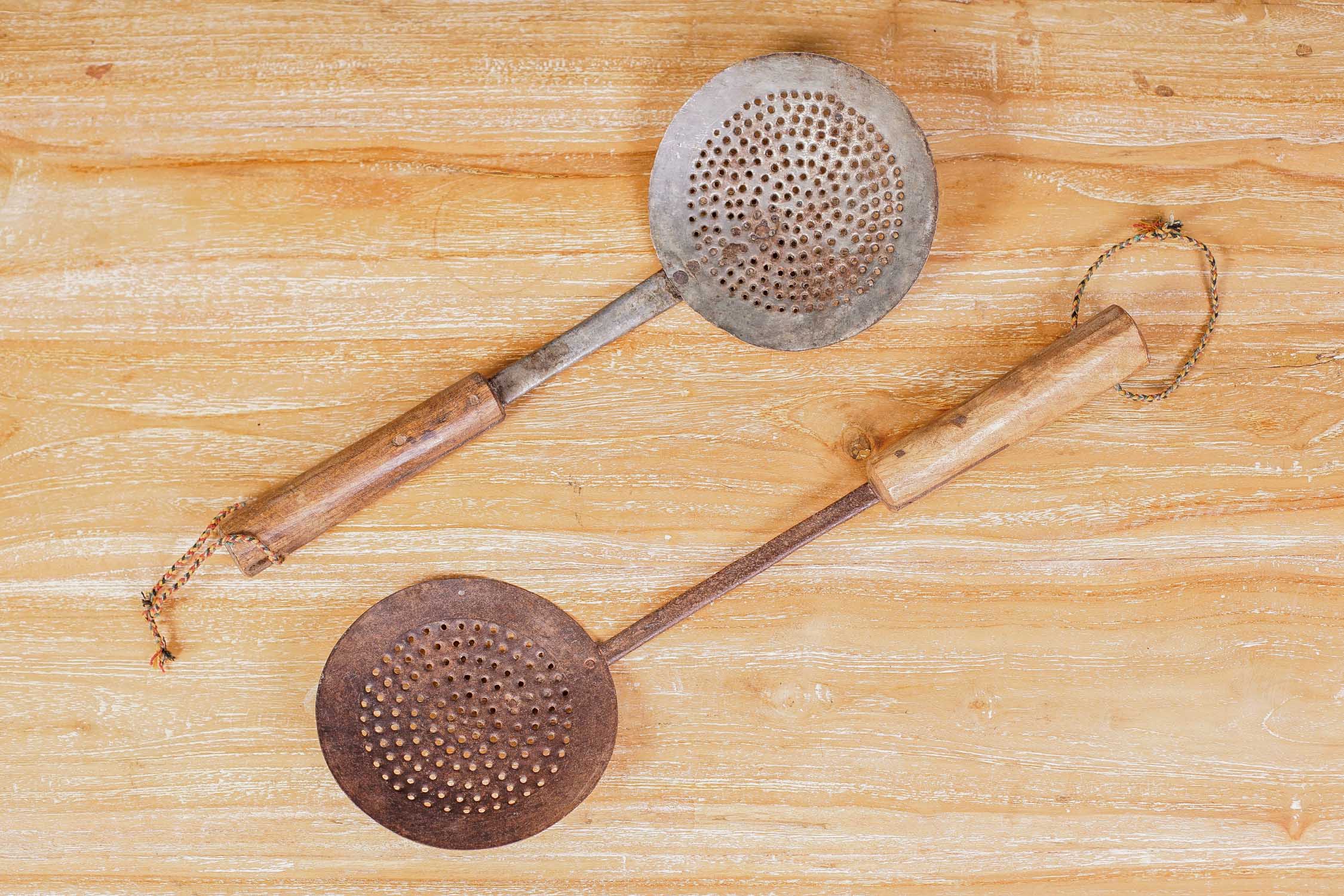 Espumaderas antiguas de metal. Un objeto único para decorar espacios interiores y exteriores. Fabricado en India.