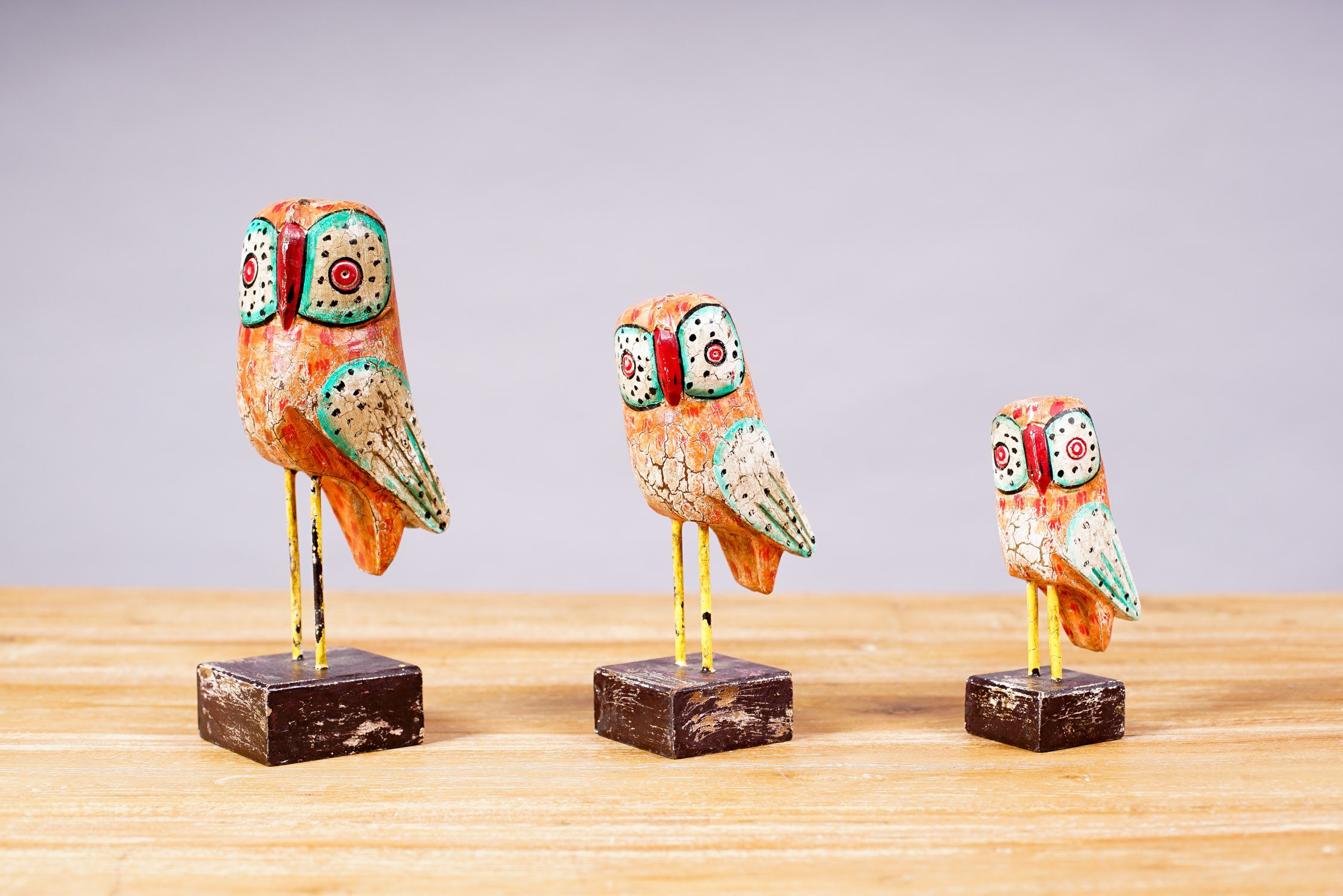 Esculturas en Metal pintado , figuras de Aves, fabricado en India.