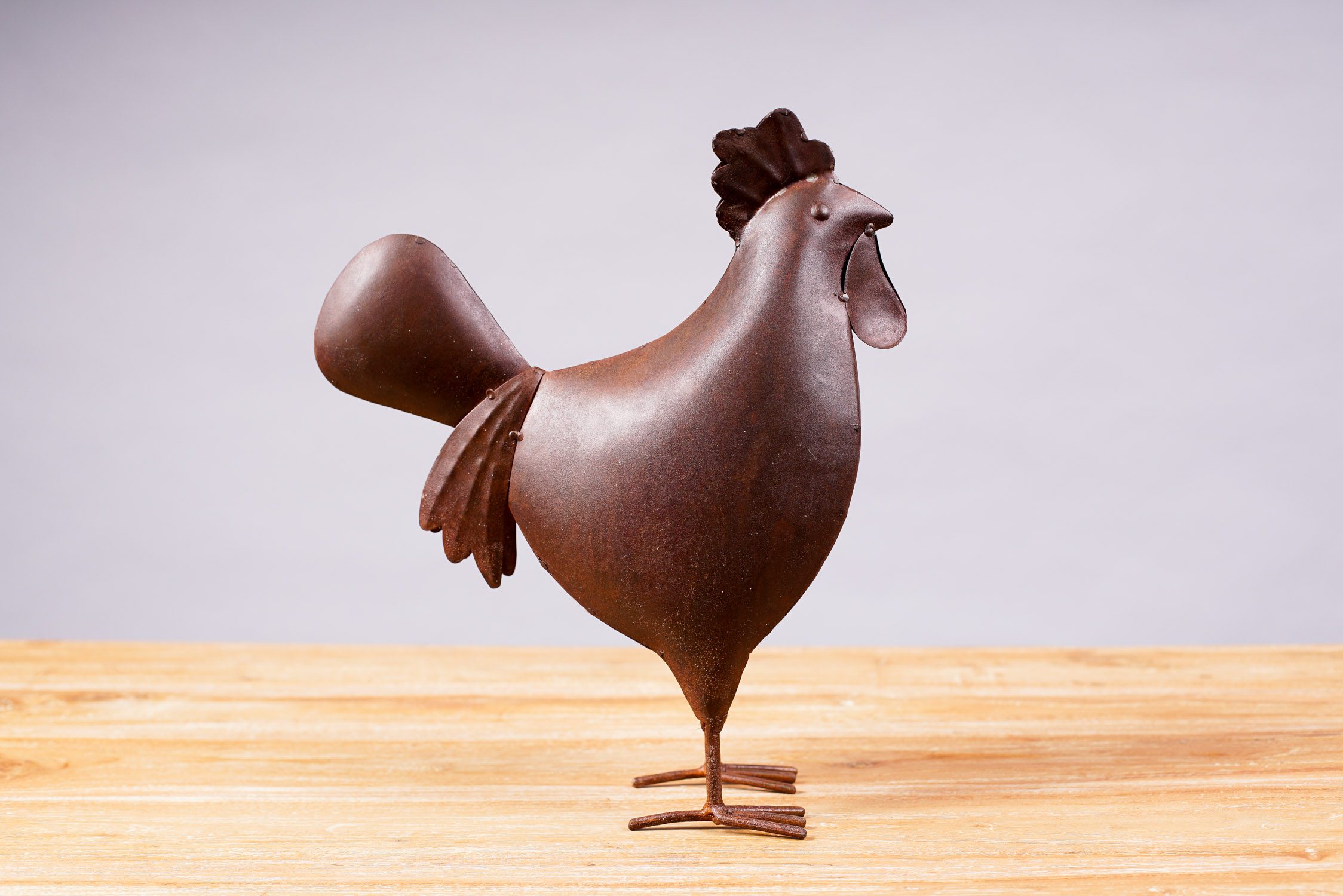 Escultura de gallo fabricado en metal. Complementa con alegría tus buffets, arrimos, mesas auxiliares y muebles de cocina, ¡Por supuesto!