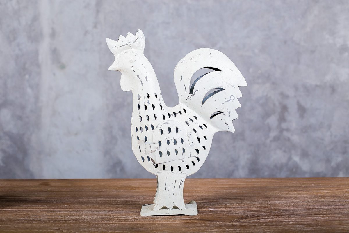 Escultura farol de gallo fabricado en metal. Complementa con alegría tus buffets, arrimos, mesas auxiliares y muebles de cocina, ¡Por supuesto!