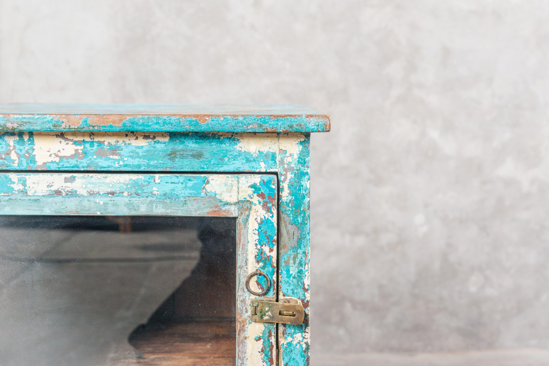 Mini vitrina India fabricada en madera de teca. El mueble perfecto para exhibir todos tus favoritos; loza, libros, pequeños objetos y figuras de decoración, etc.!