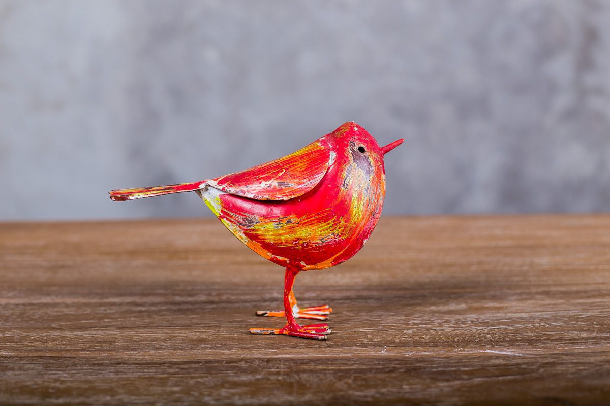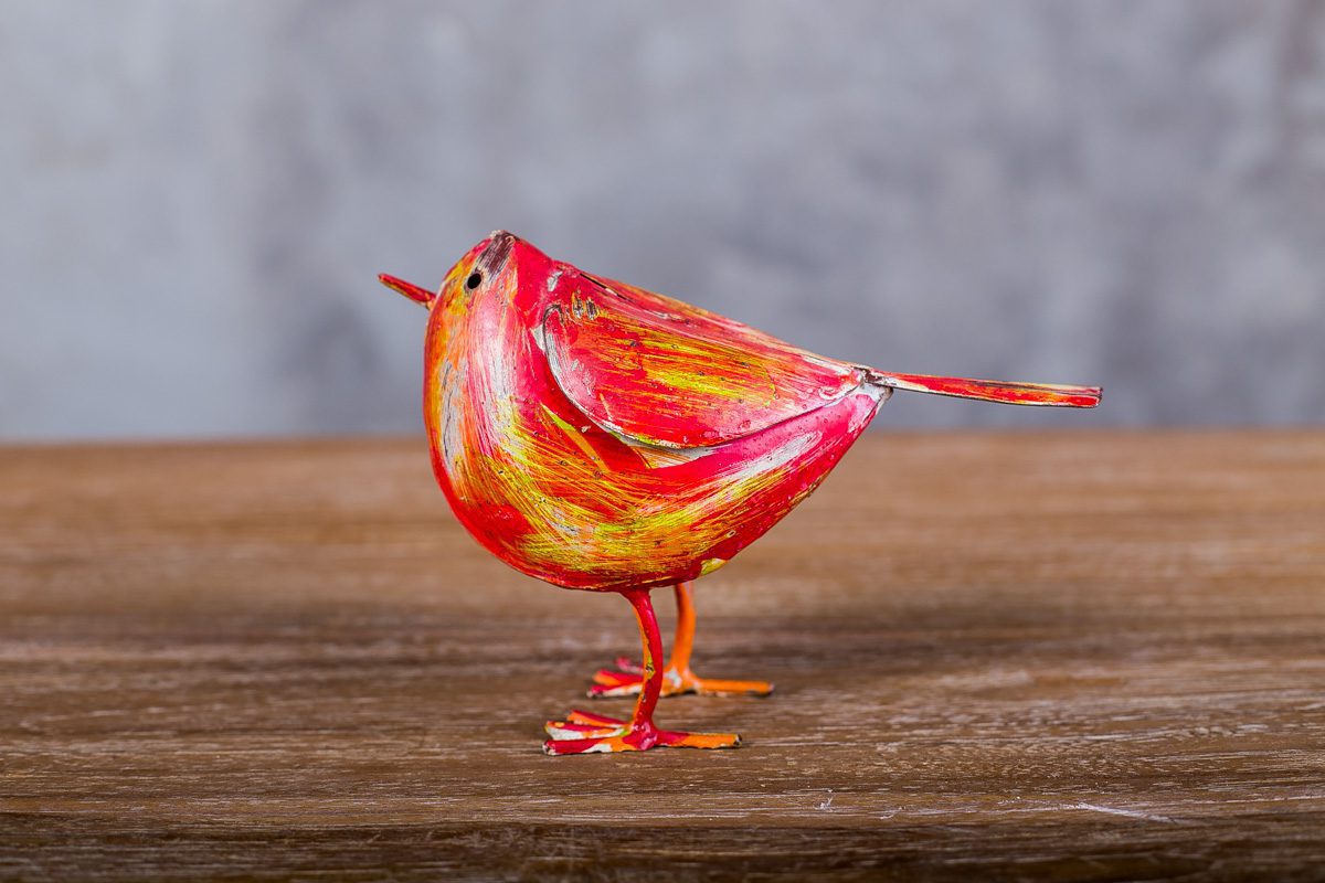Escultura de pájaro fabricado en metal. Complementa con alegría tus buffets, arrimos, mesas auxiliares y muebles de cocina, ¡Por supuesto!