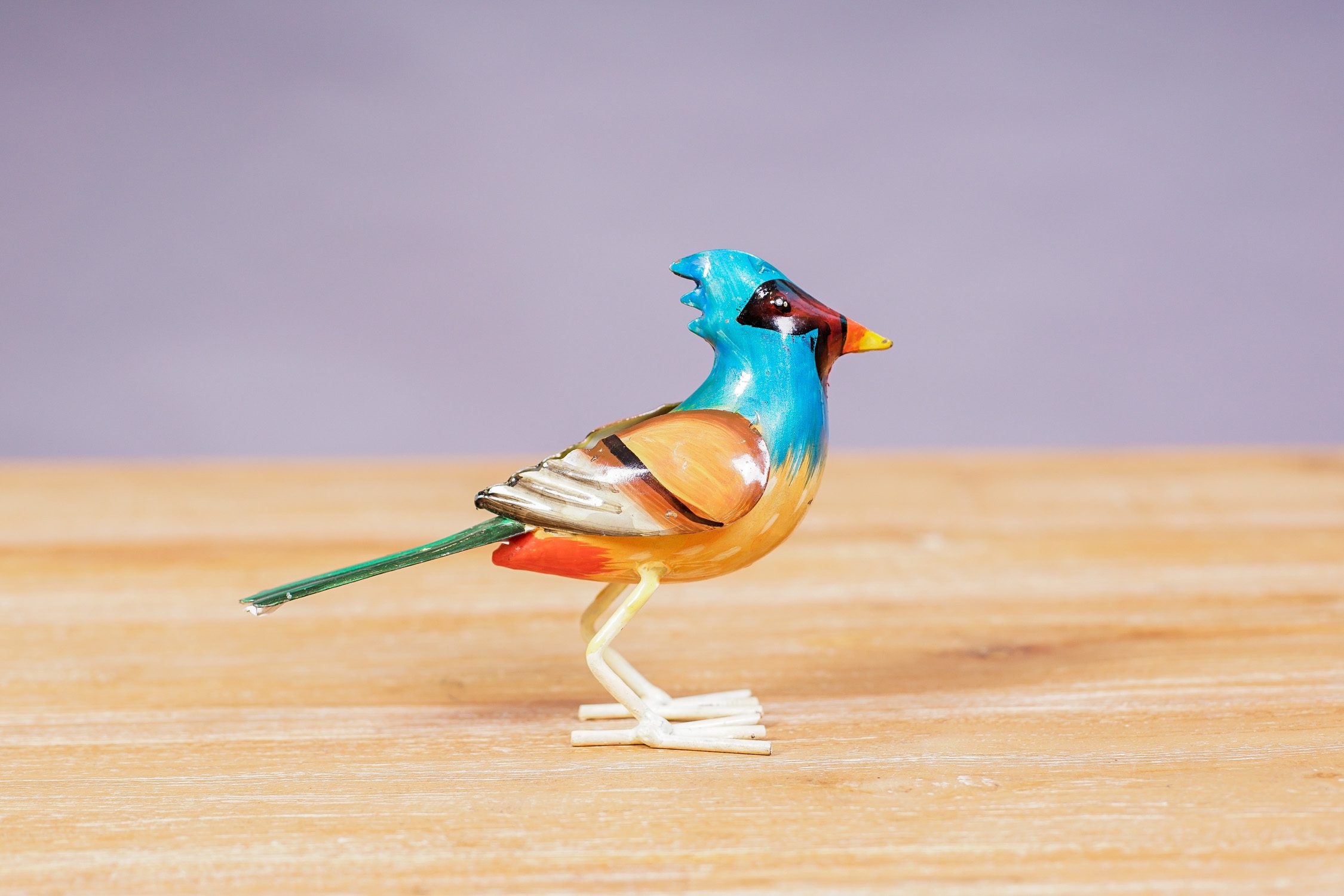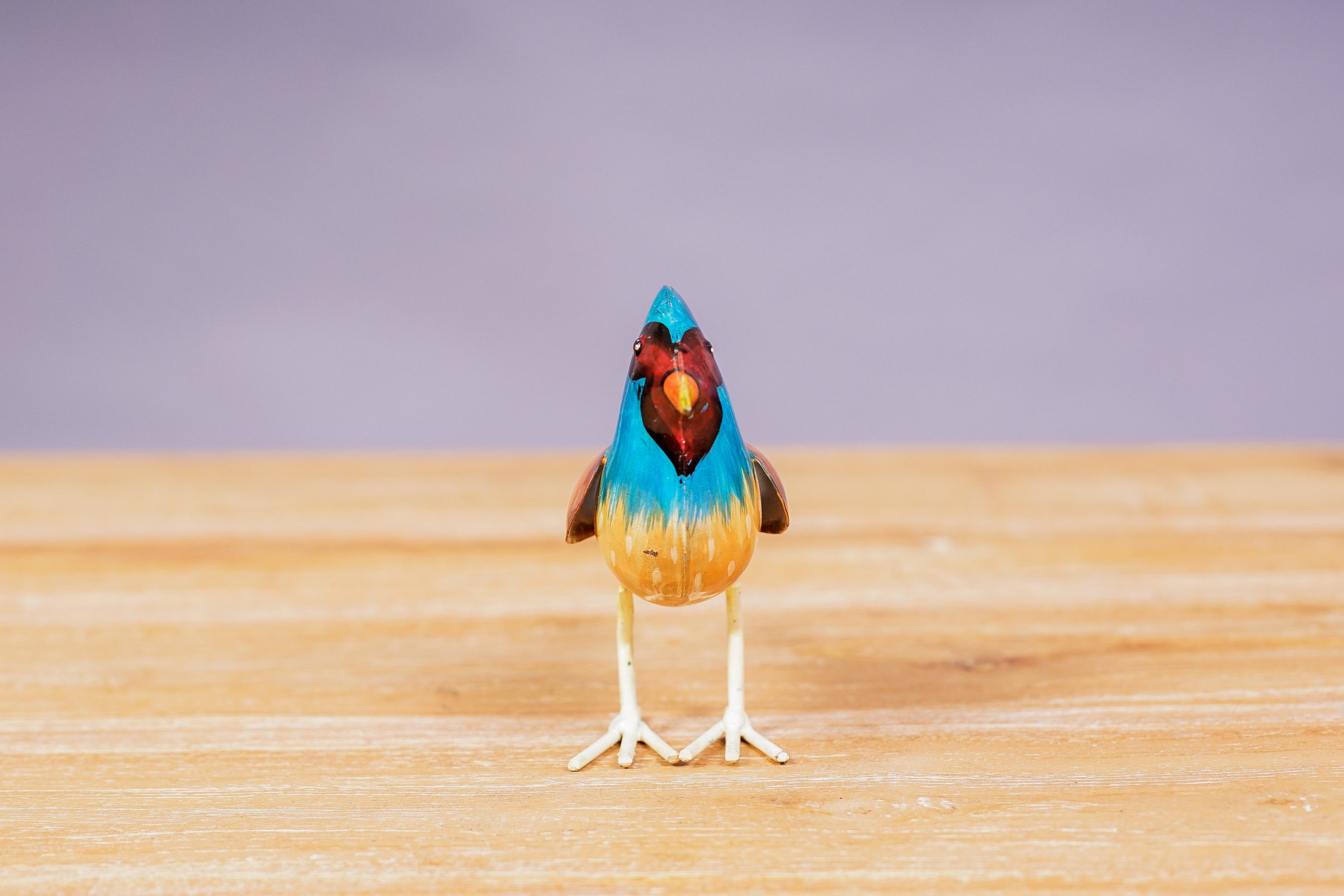 Escultura de pájaro fabricada en metal de origen Indio.Que tu hogar no prescinda absolutamente de ningún detalle de tu mano decoradora. Tenemos una línea de esculturas de diversos animales que puedes elegir.