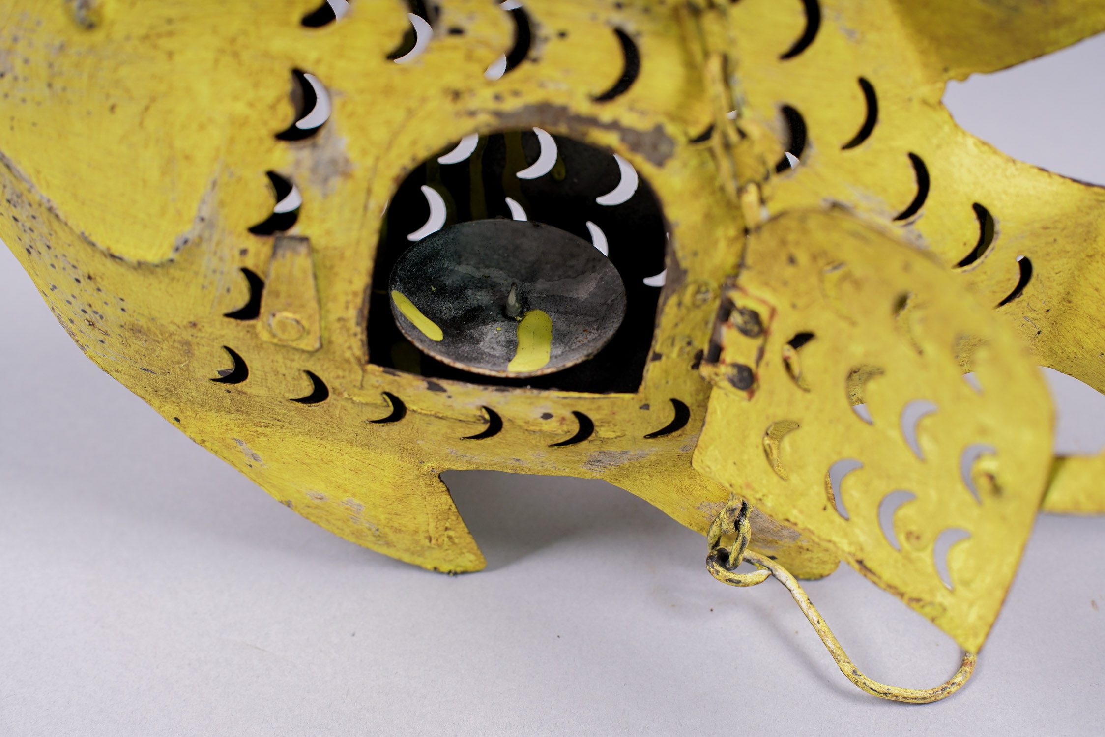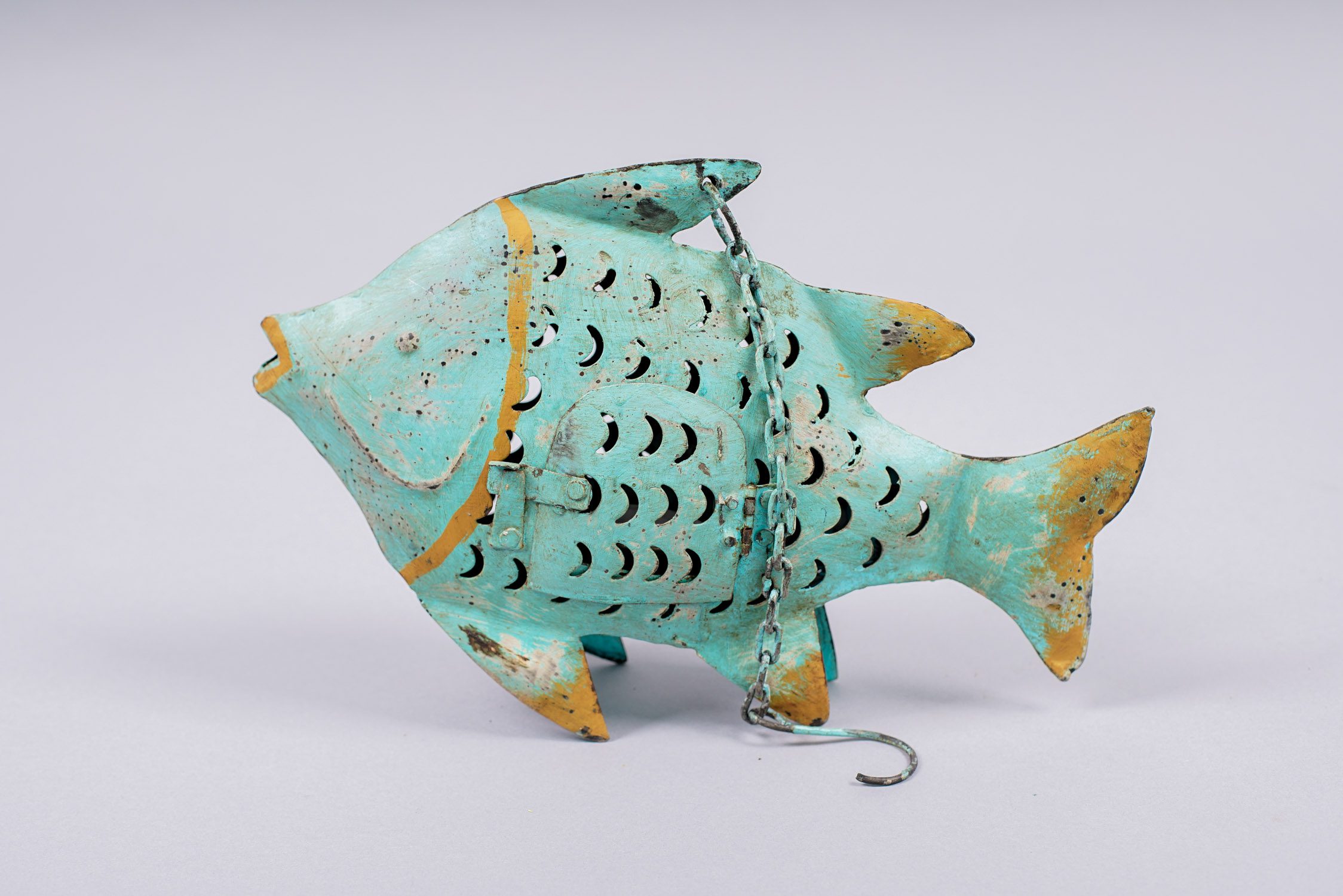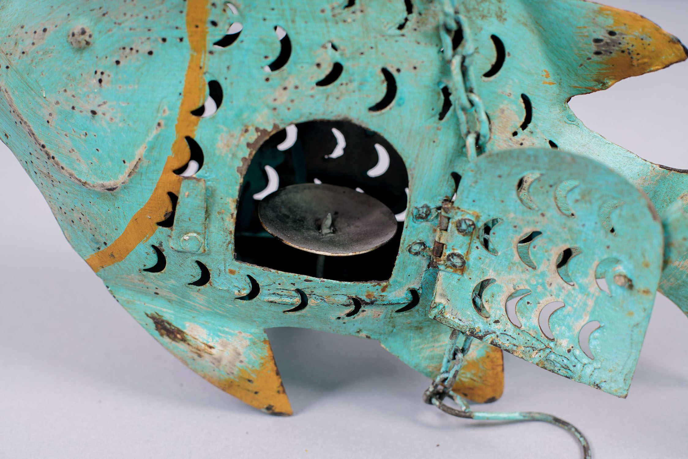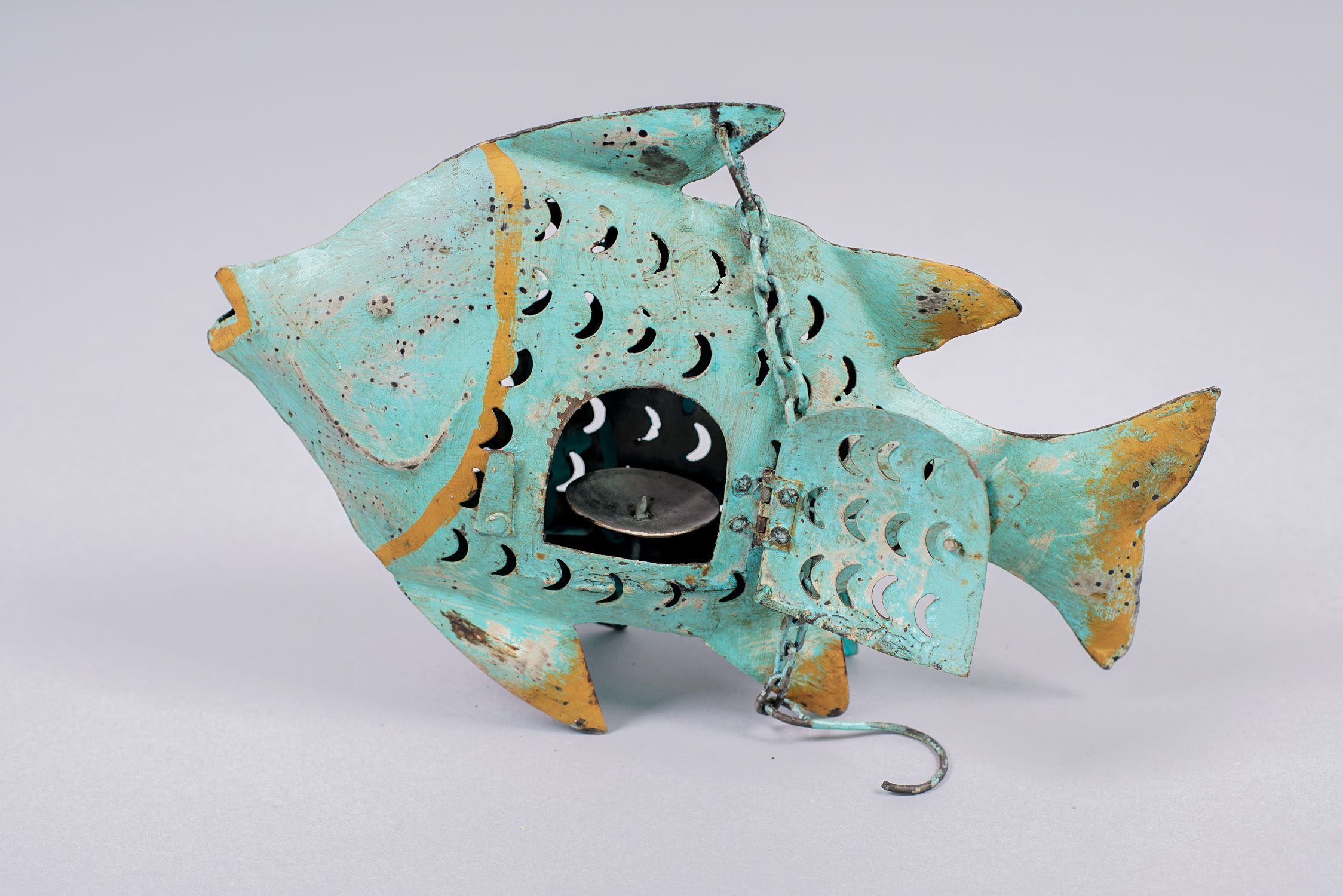 Figura de pescado Globo/ candelabro fabricada en metal de origen Indio. Que tu hogar no prescinda absolutamente de ningún detalle de tu mano decoradora. Tenemos una línea de esculturas de diversos animales que puedes elegir.