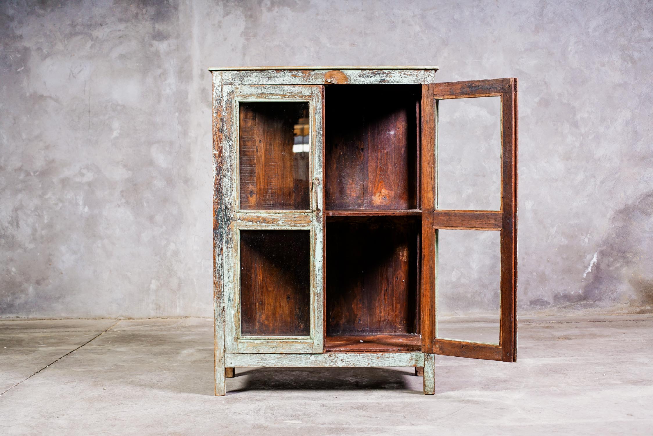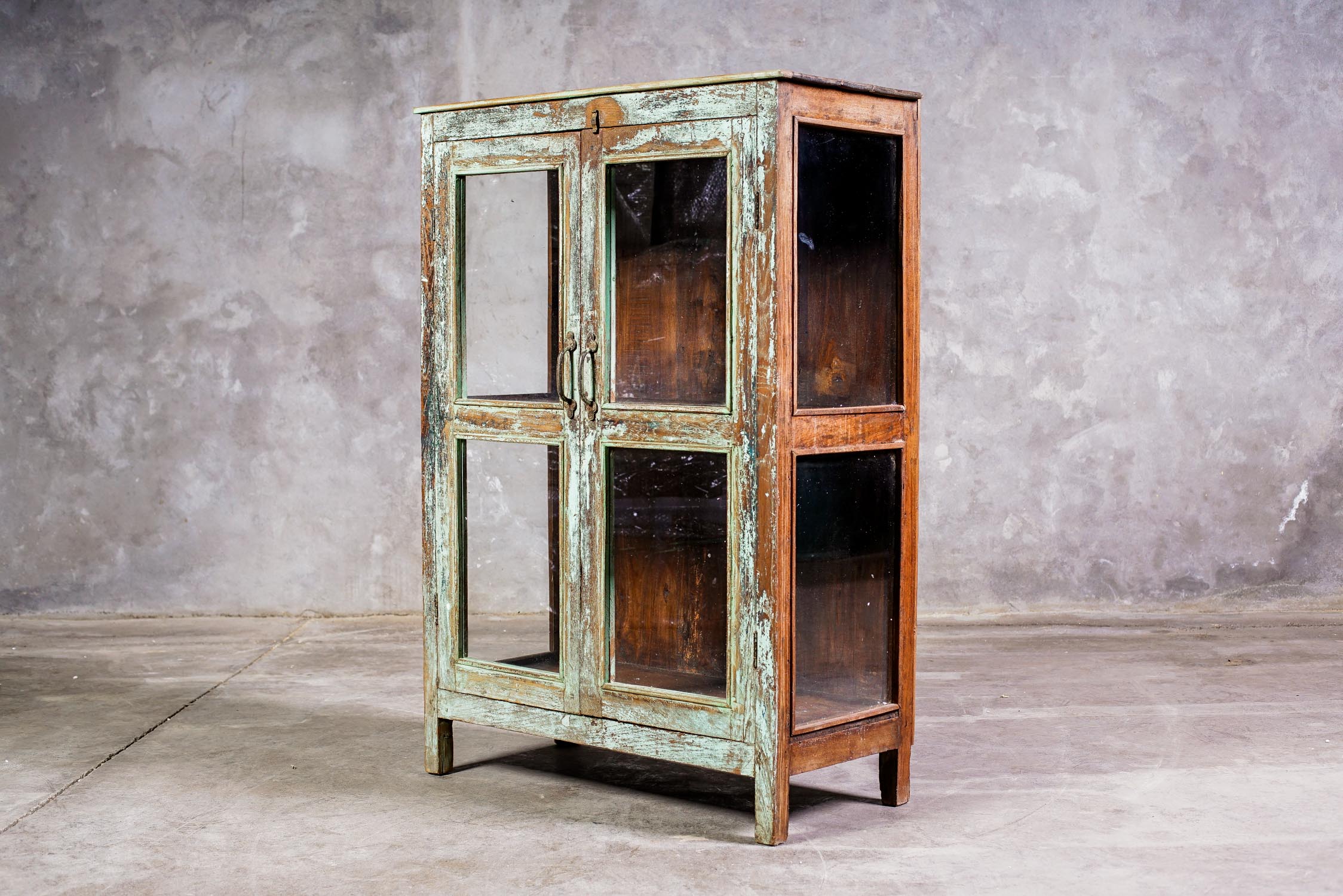 vitrina India fabricada en madera de teca. El mueble perfecto para exhibir todos tus favoritos; loza, libros, pequeños objetos y figuras de decoración, etc.!